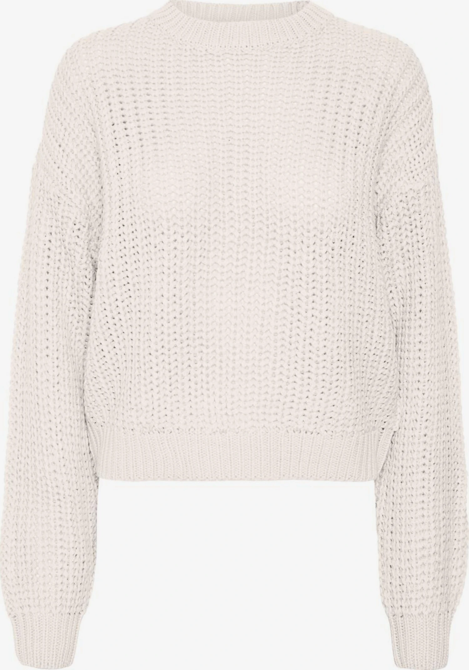 EffenRonde halsGeribbelde kraagRechte zoomGeribd ceintuurtjeOvercut schouderLicht transparantFully fashionedMet textuur
