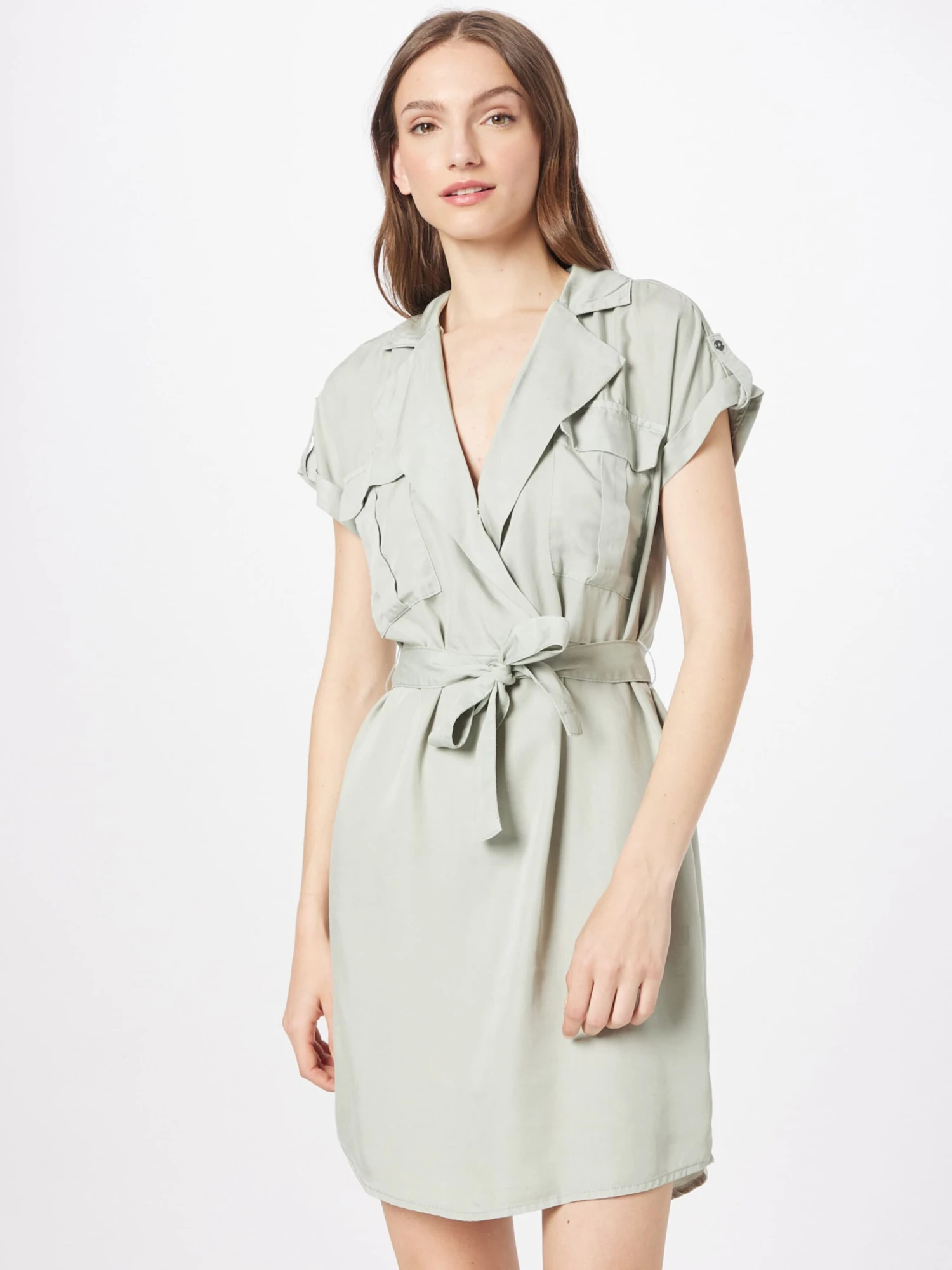 EffenLyocellV-halsGedrapeerdWikkel designGevoerde zoom/randOmgeslagen zoomOm te knopen/bindenBorstzakOp staal nadenVoelt zacht aan