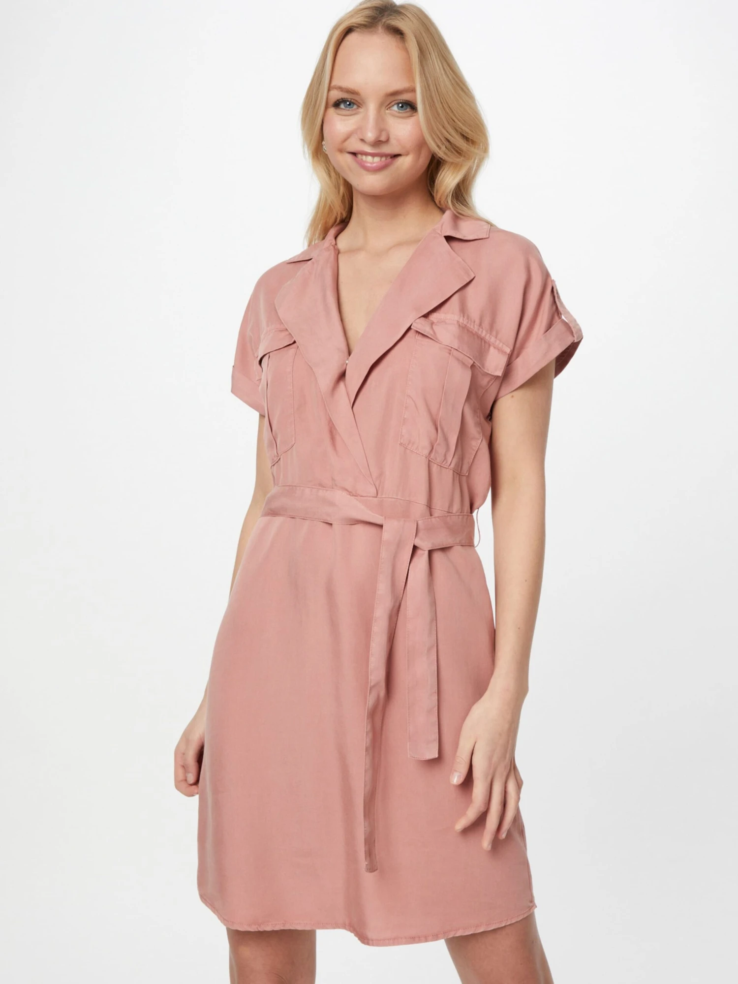EffenLyocellWikkel designGevoerde zoom/randRevers kraagOm te knopen/bindenTailleriemRoll-up mouwenGladde stofLichte stofRiemlussenDrukknoopTENCEL™ Lyocell*