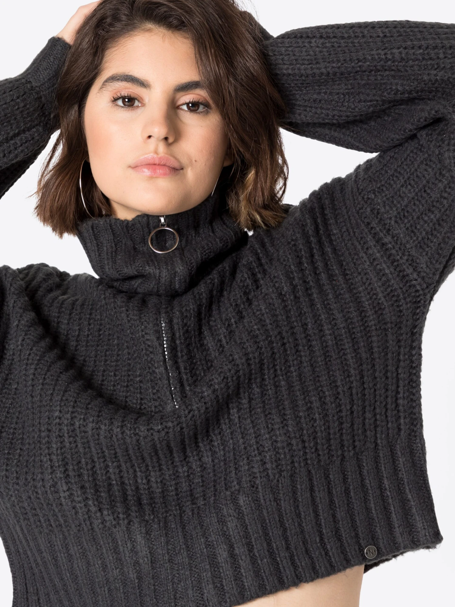 EffenSchipperskraagGeribbeld gebreidOvercut schouderHalve ritsMet textuurVoelt zacht aanRitssluiting