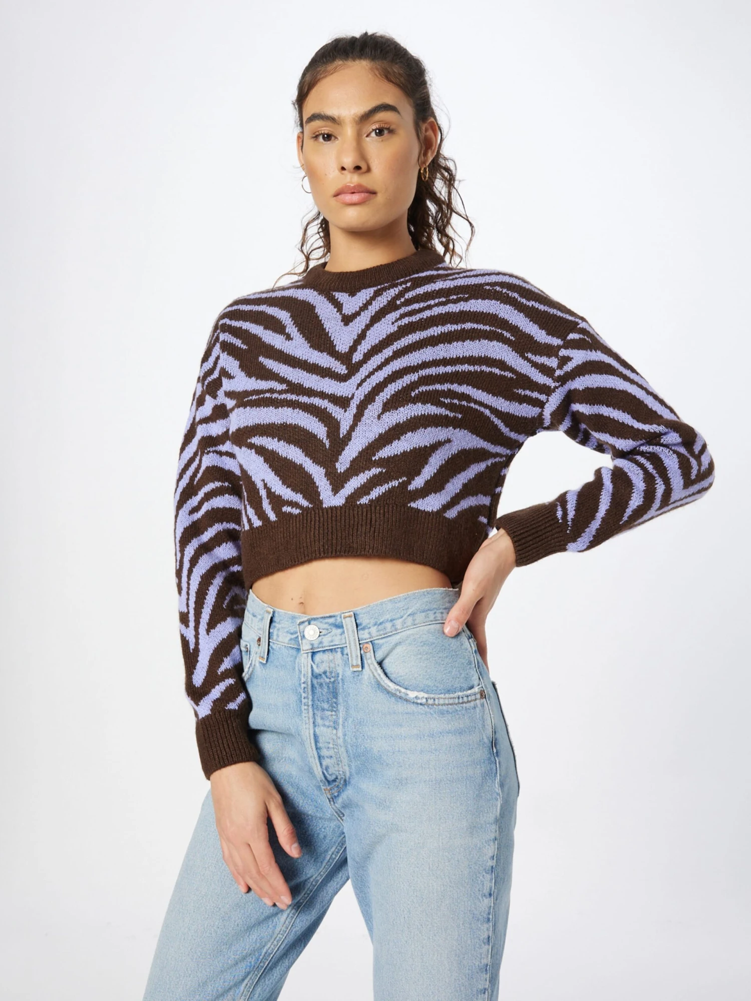 DierenprintRonde halsGeribbelde kraagRechte zoomOvercut schouderAll-over patroonVoelt zacht aan