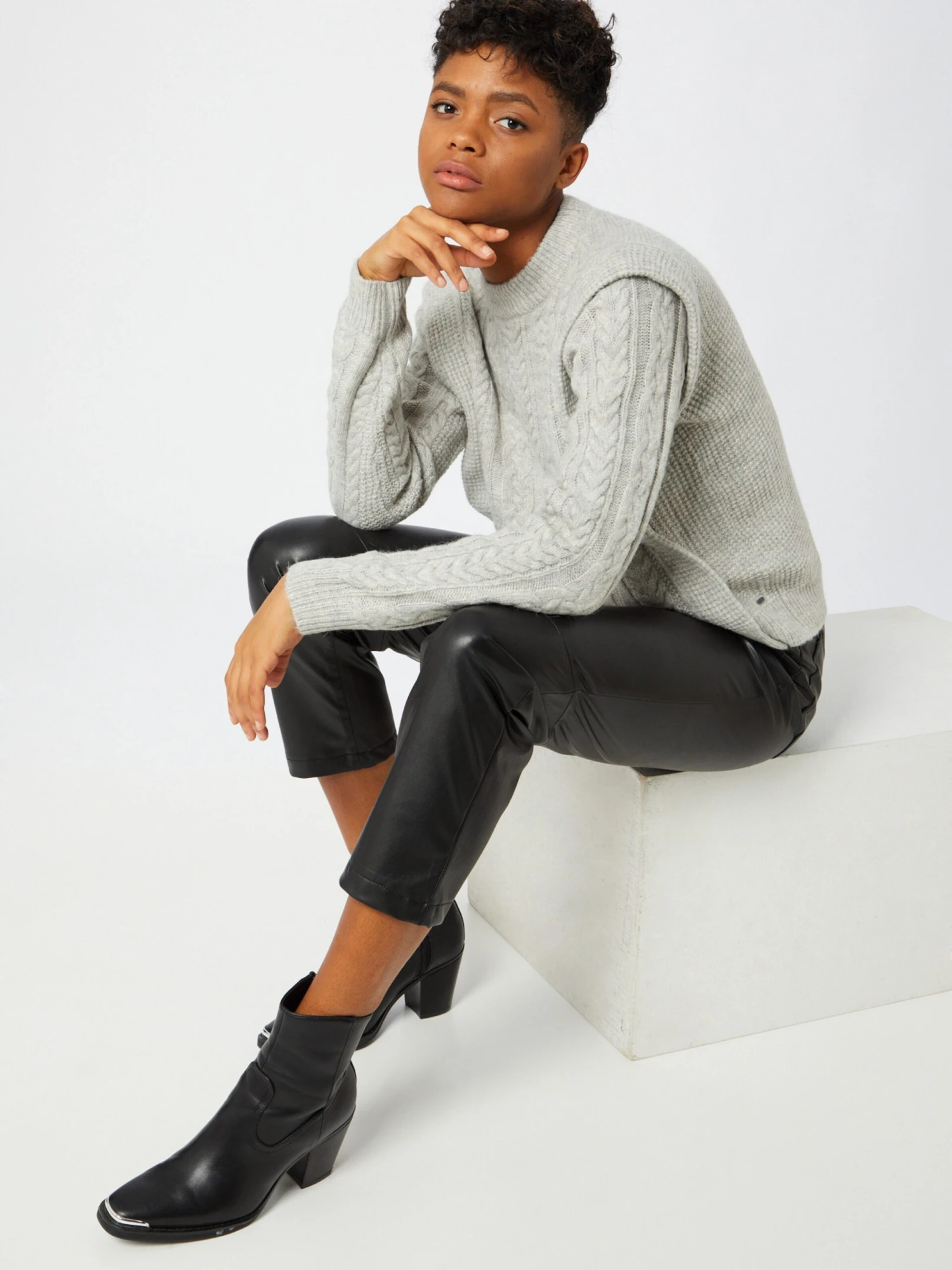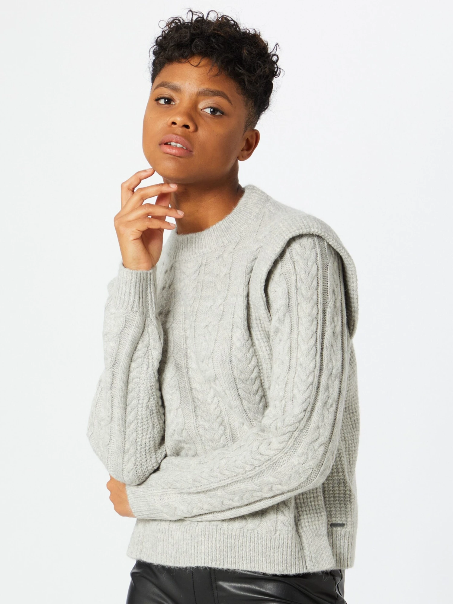 EffenRonde halsRechte zoomGeribbeld gebreidPatroon gebreidMet textuur