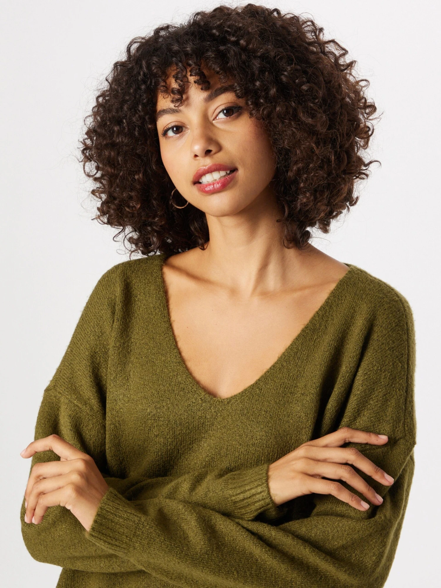 MélangeV-halsGeribd ceintuurtjeDiepe snit/decolletéOvercut schouderMet textuurVoelt zacht aan