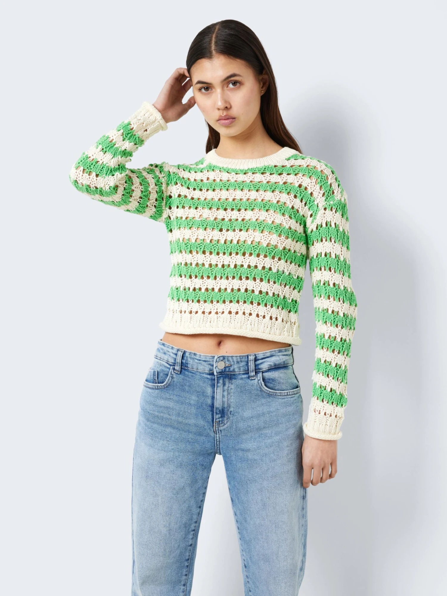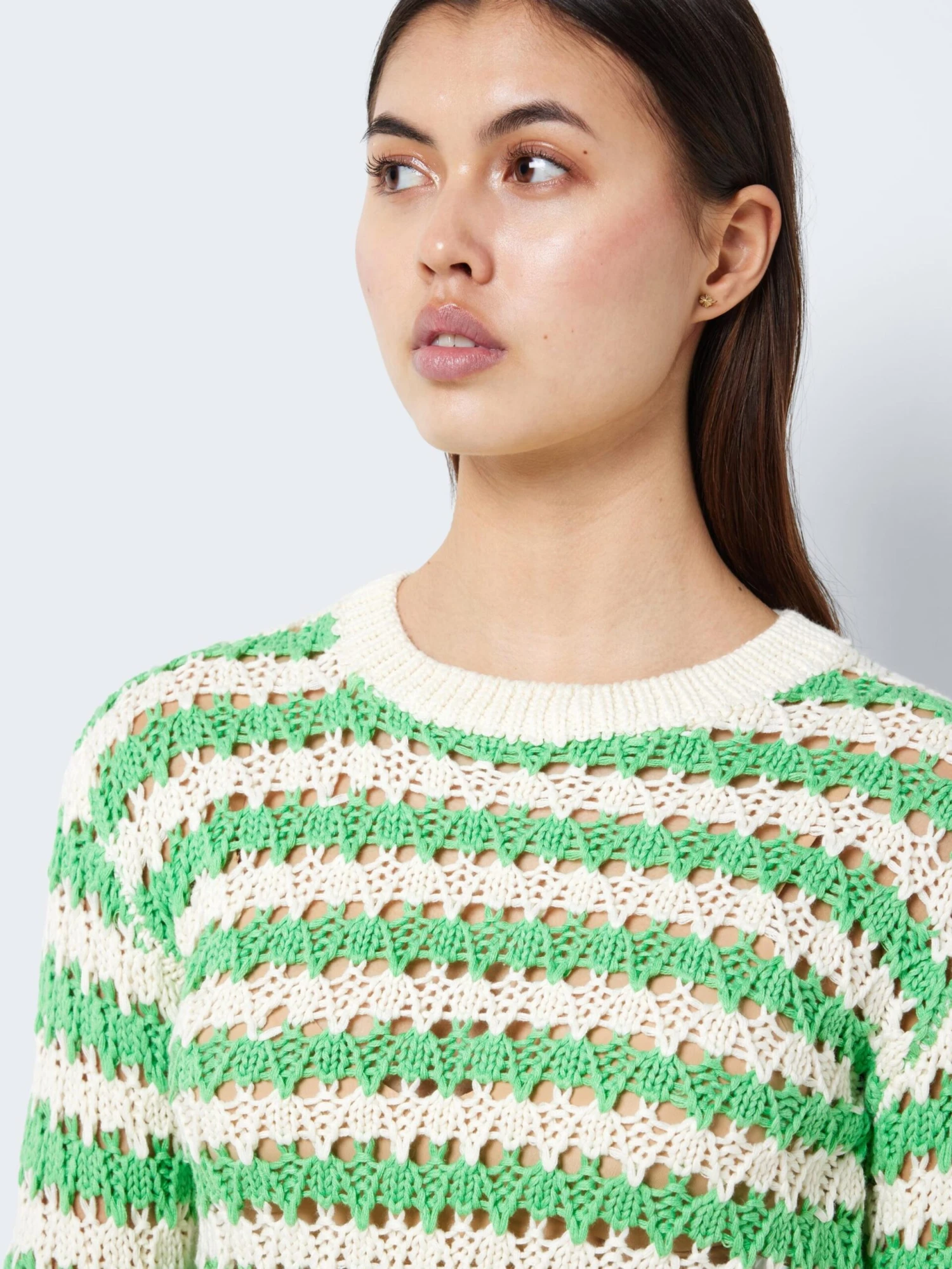 GestreeptKatoenRonde halsMeshGeribbelde kraagOvercut schouderAll-over patroonVoelt zacht aan