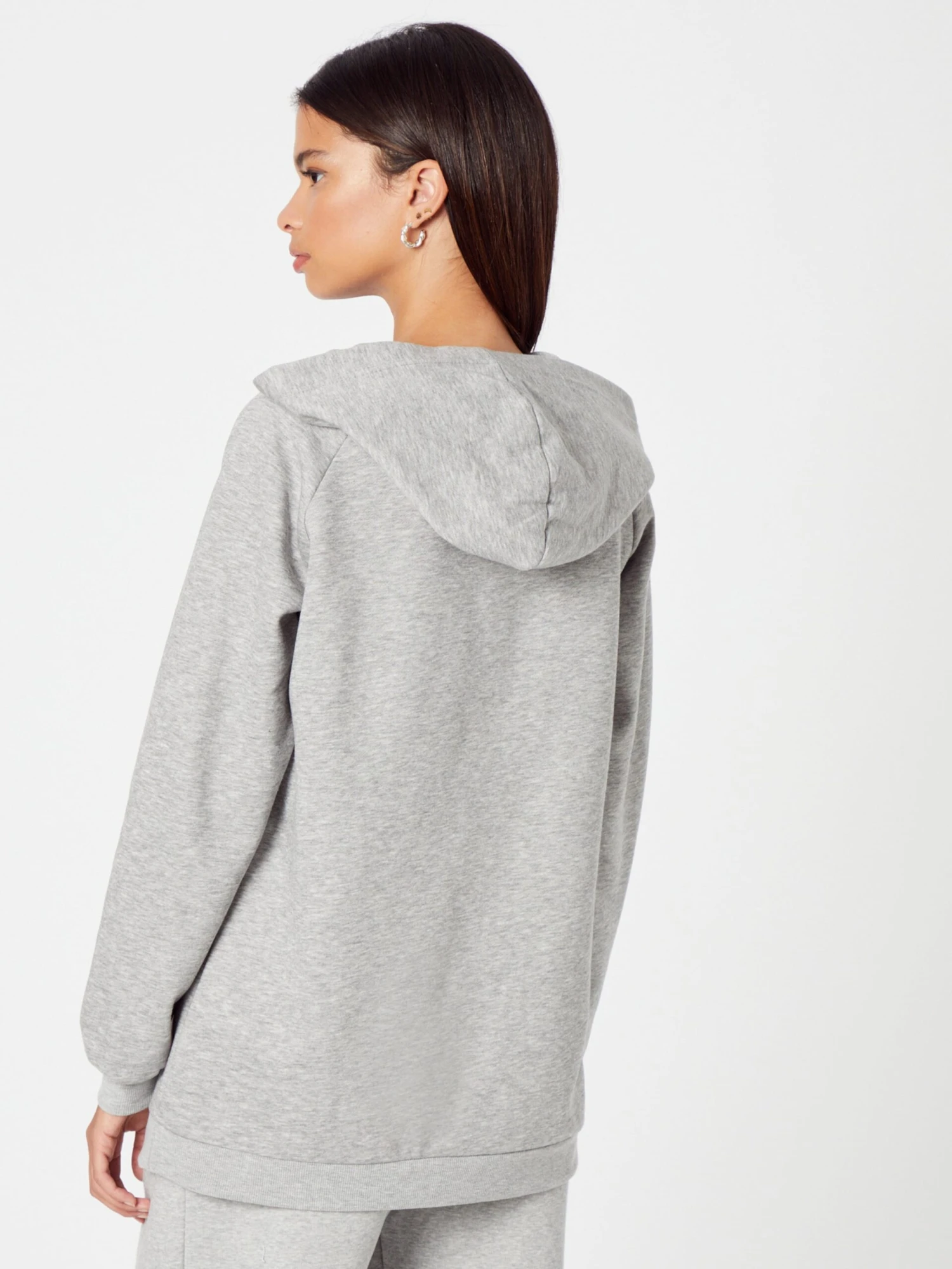 MélangeCapuchonRechte zoomRaglanmouwenGeribd ceintuurtjeOp staal nadenZacht opgeruwde binnenkantVoelt zacht aanGerecycled polyester