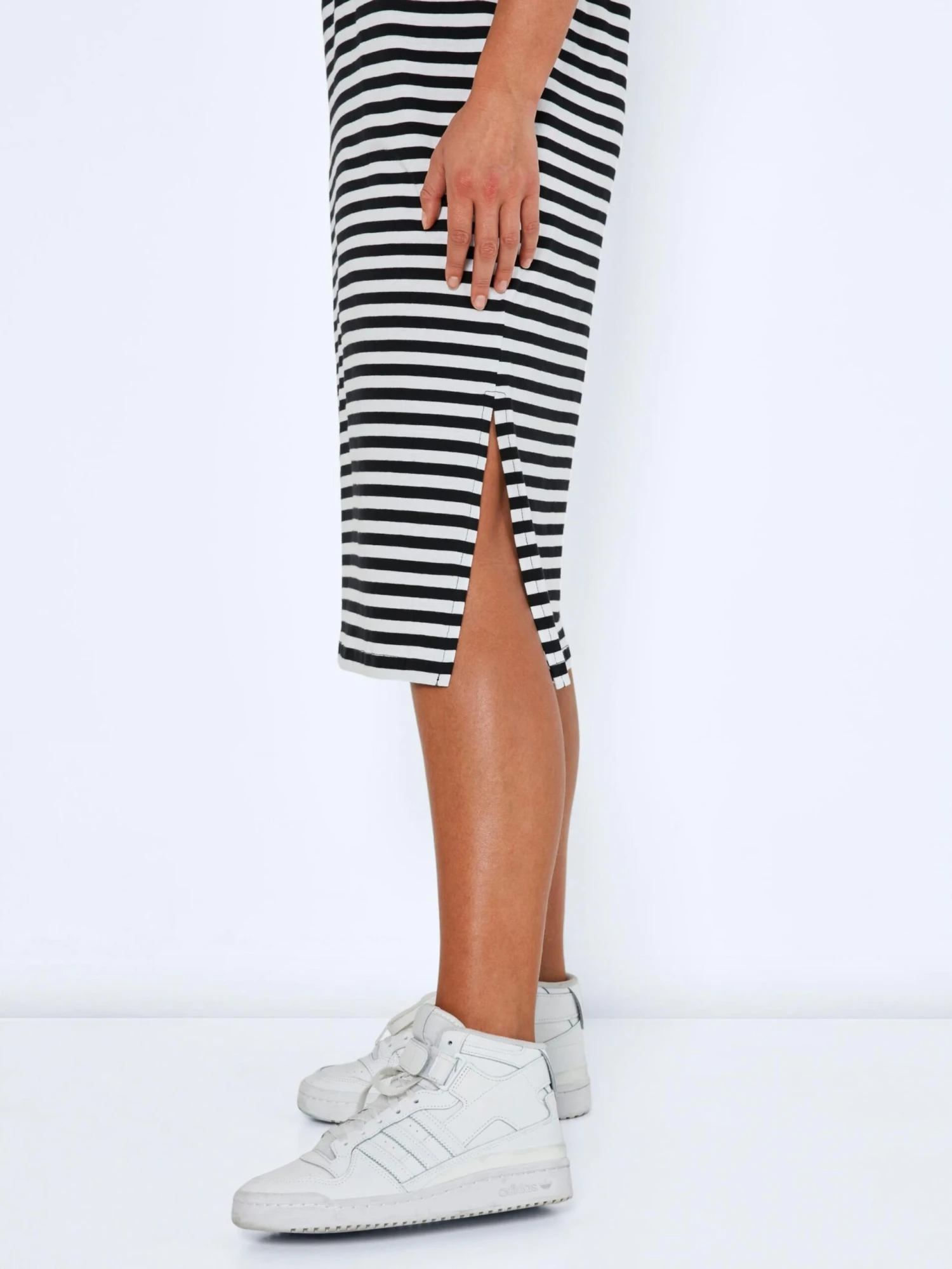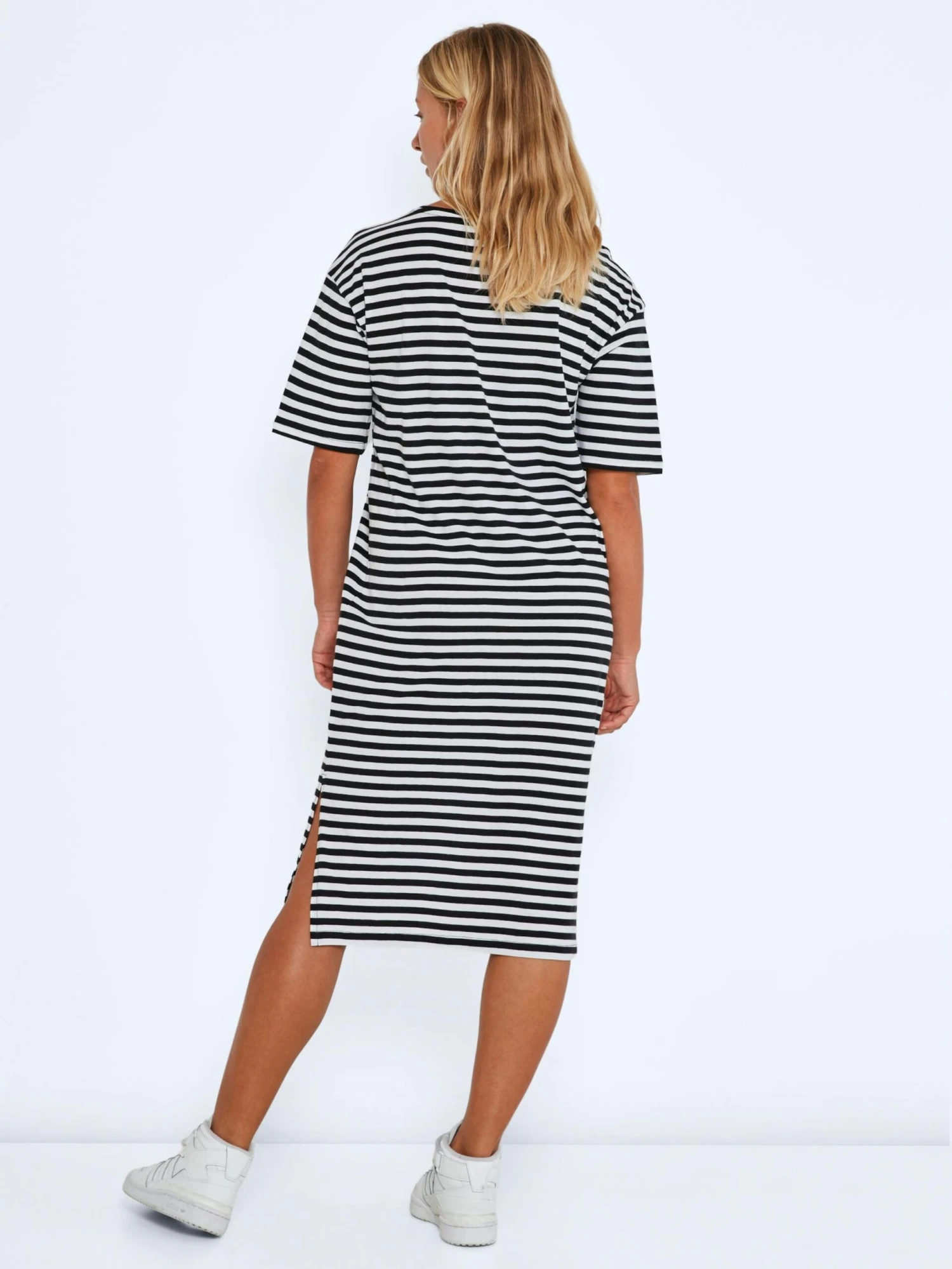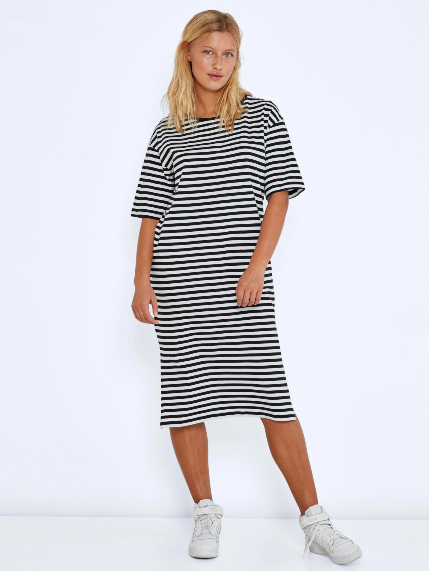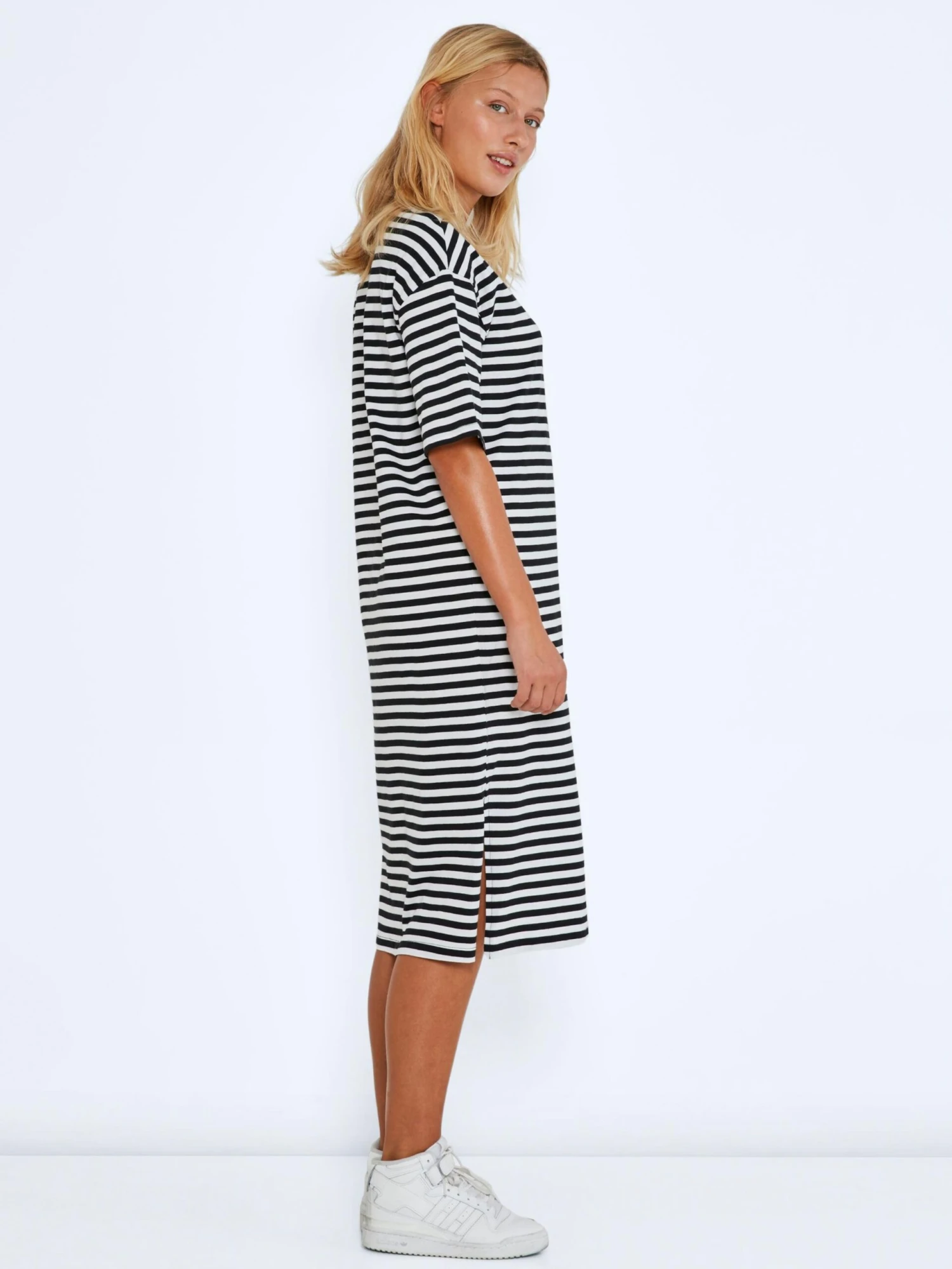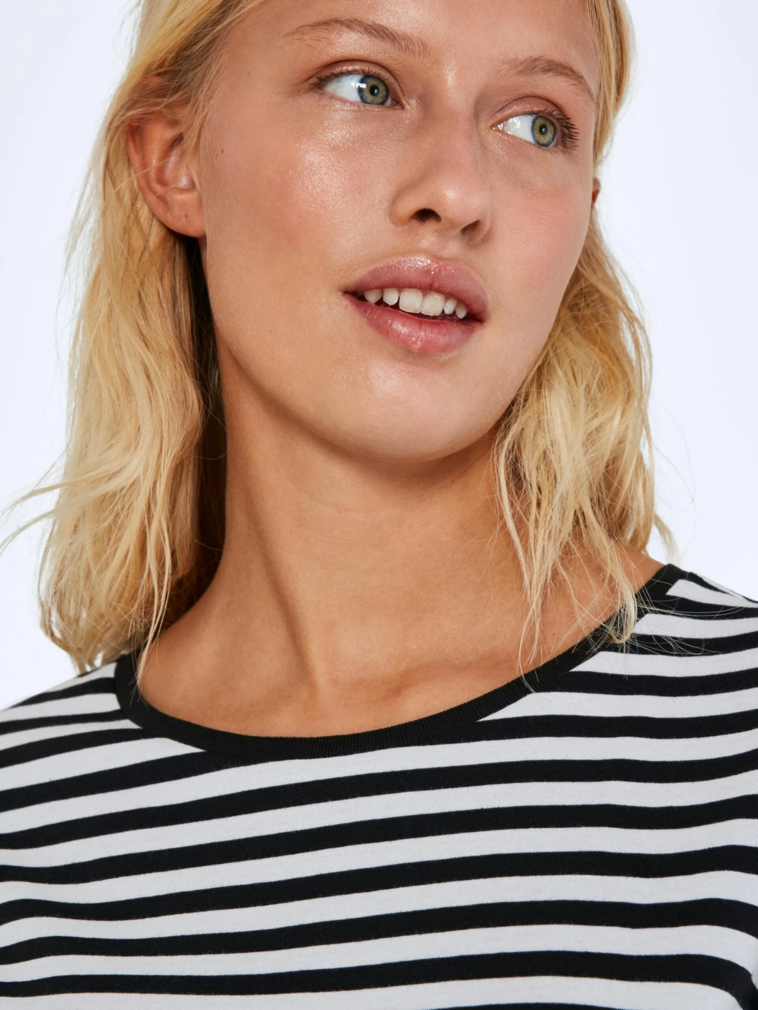 GestreeptJerseyRonde halsGevoerde zoom/randZijdelingse inkepingenOvercut schouderIngelegde kraagAll-over patroonVoelt zacht aan
