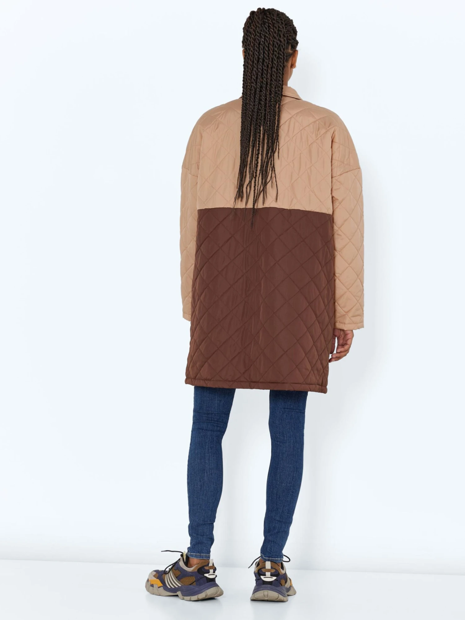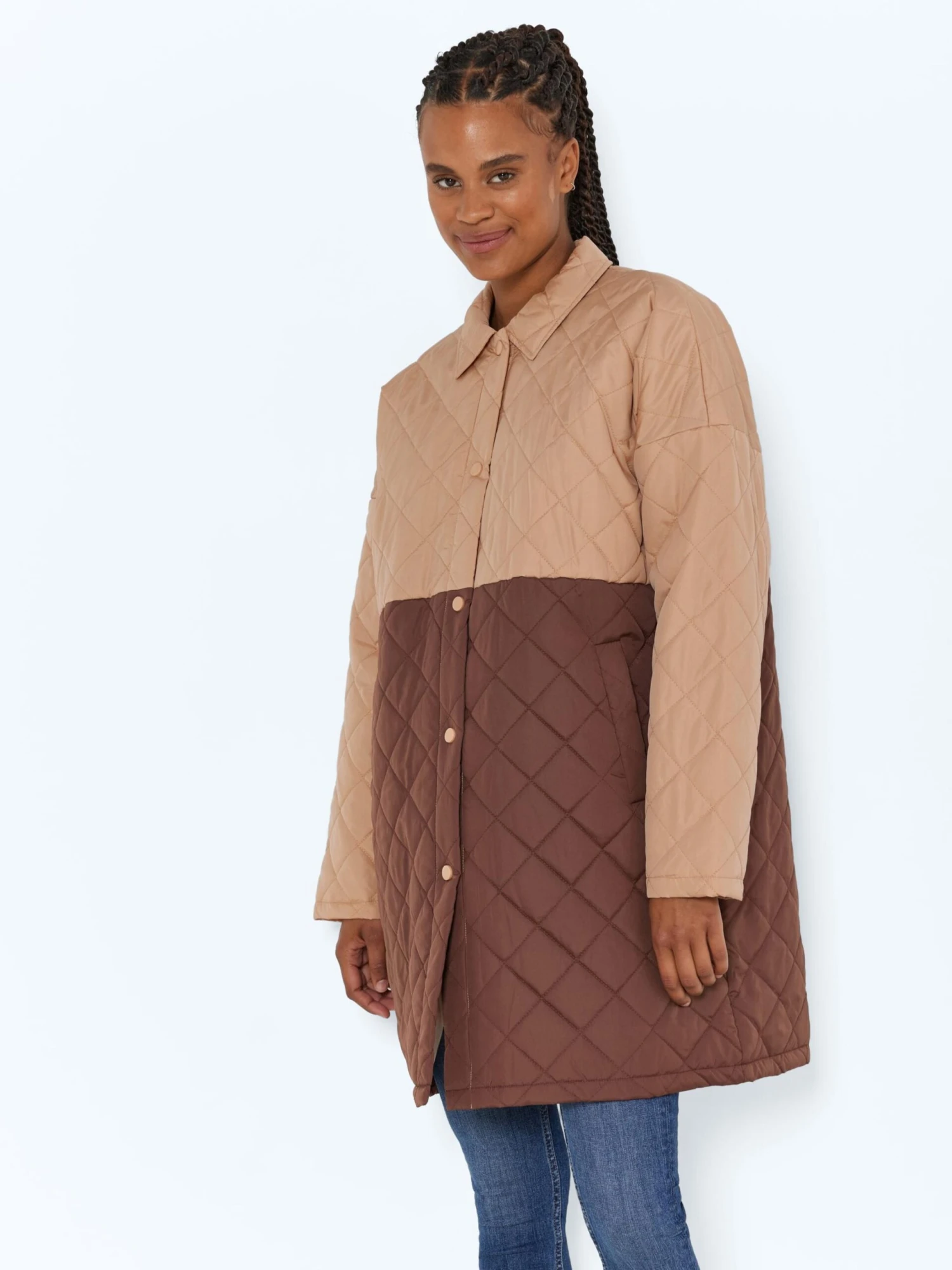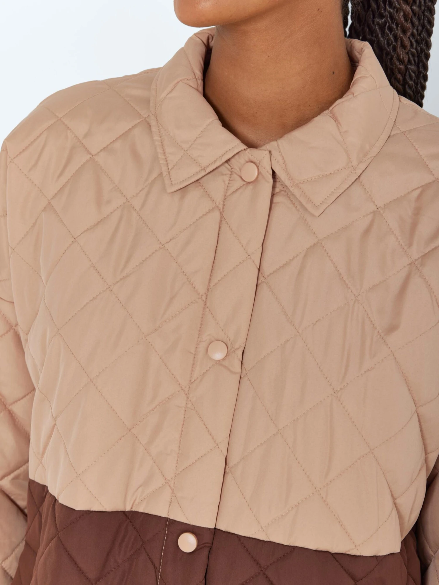 Color-BlockingGewatteerde jasRonde zoomOvercut schouderTurn-down kraagZakken aan de zijkantStikselsGladde stofLicht gevoerd