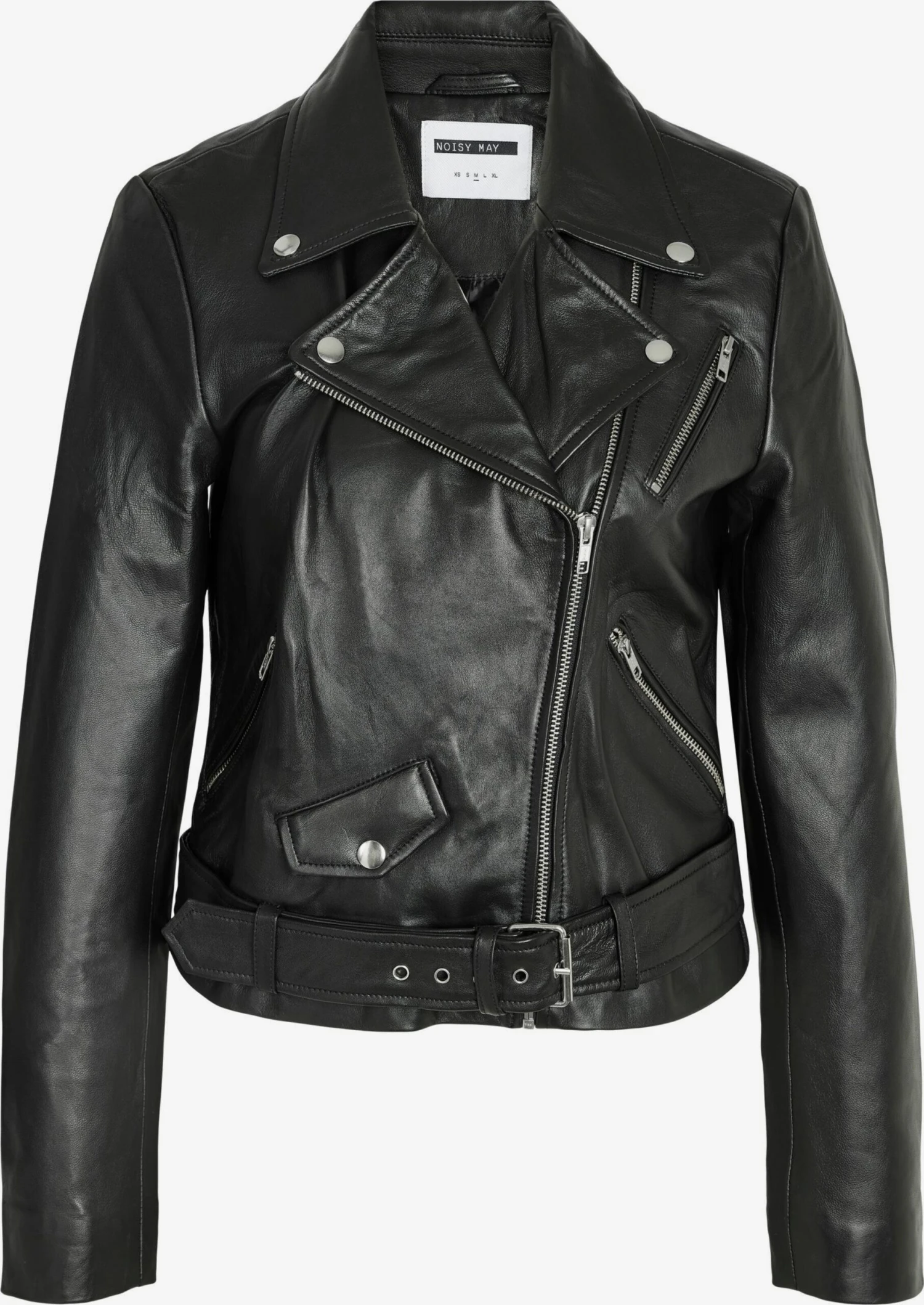 EffenLeerBikerjackMouw ritsBorstzakMet riemRitszakken aan de zijkantSchuine ritsStudsOp staal nadenStevige stofLicht gevoerdRitssluiting