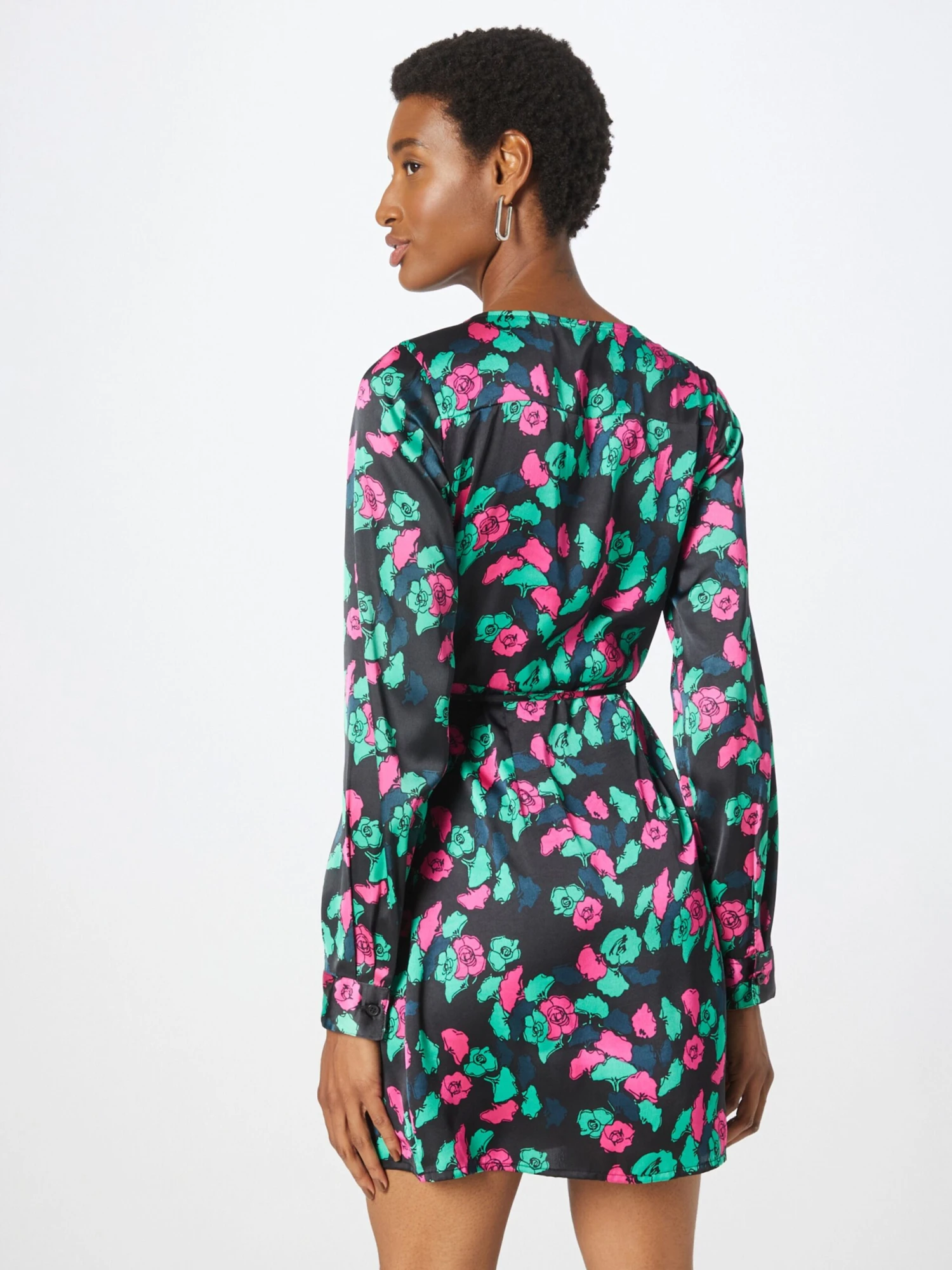 BloemenprintV-halsWikkel design1-knoops manchettenRechte manchettenDiepe snit/decolletéOm te knopen/bindenAll-over patroonGladde stof