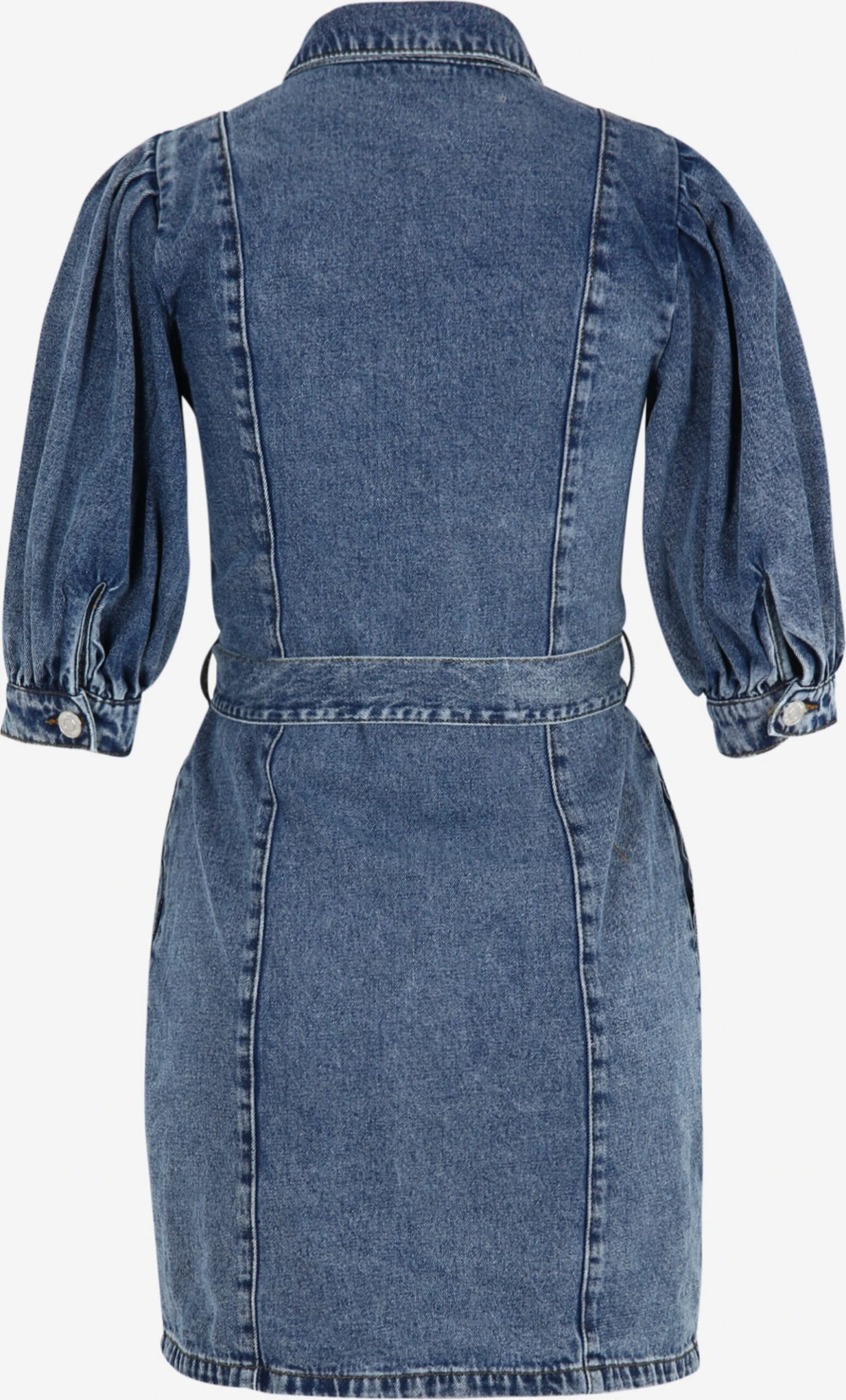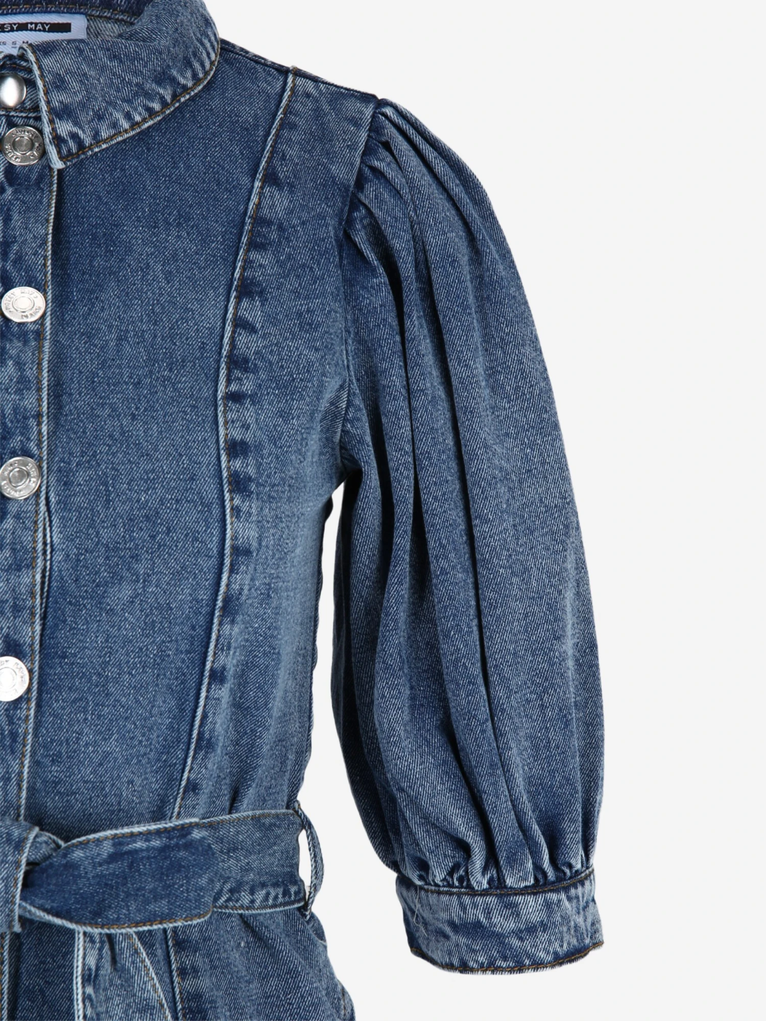 EffenDenimKentkraagGedrapeerd1-knoops manchettenRechte manchettenKnop placketDeelnadenTurn-down kraagTailleriemContrasterende nadenGewassen effectVaste gripRiemlussenKnoopsluiting