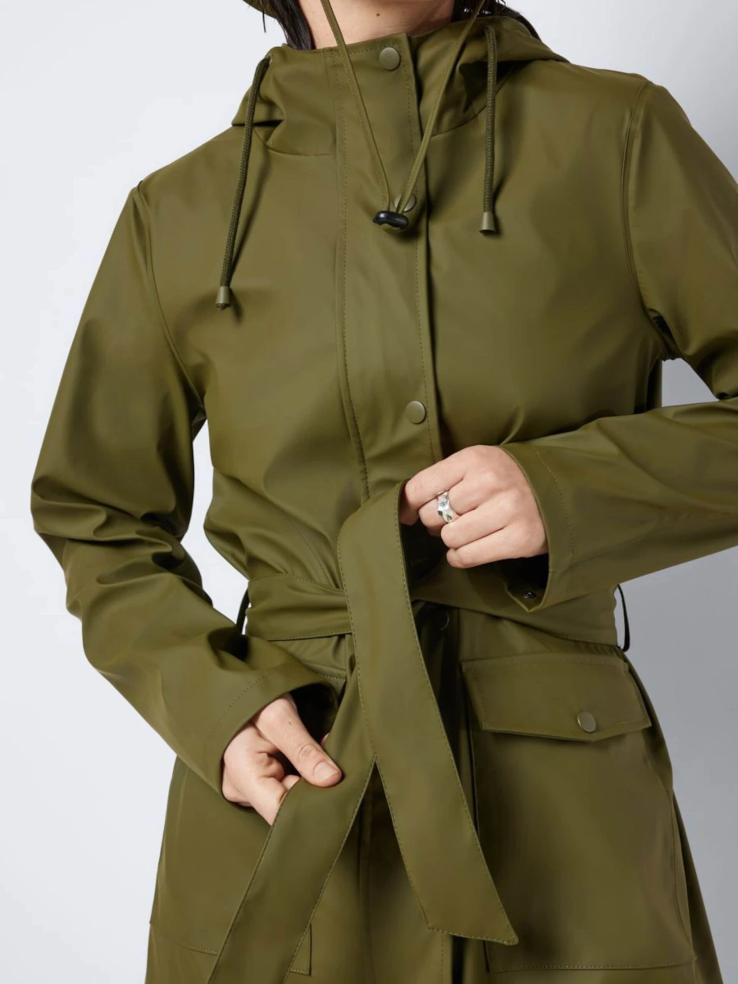 EffenRegenjasGevoerde zoom/randDrukknopenRechte zoomMet capuchonOpgezette zakkenTailleriemOp staal nadenGladde stofWaterdichtRiemlussenNiet gevoerdDrukknoop