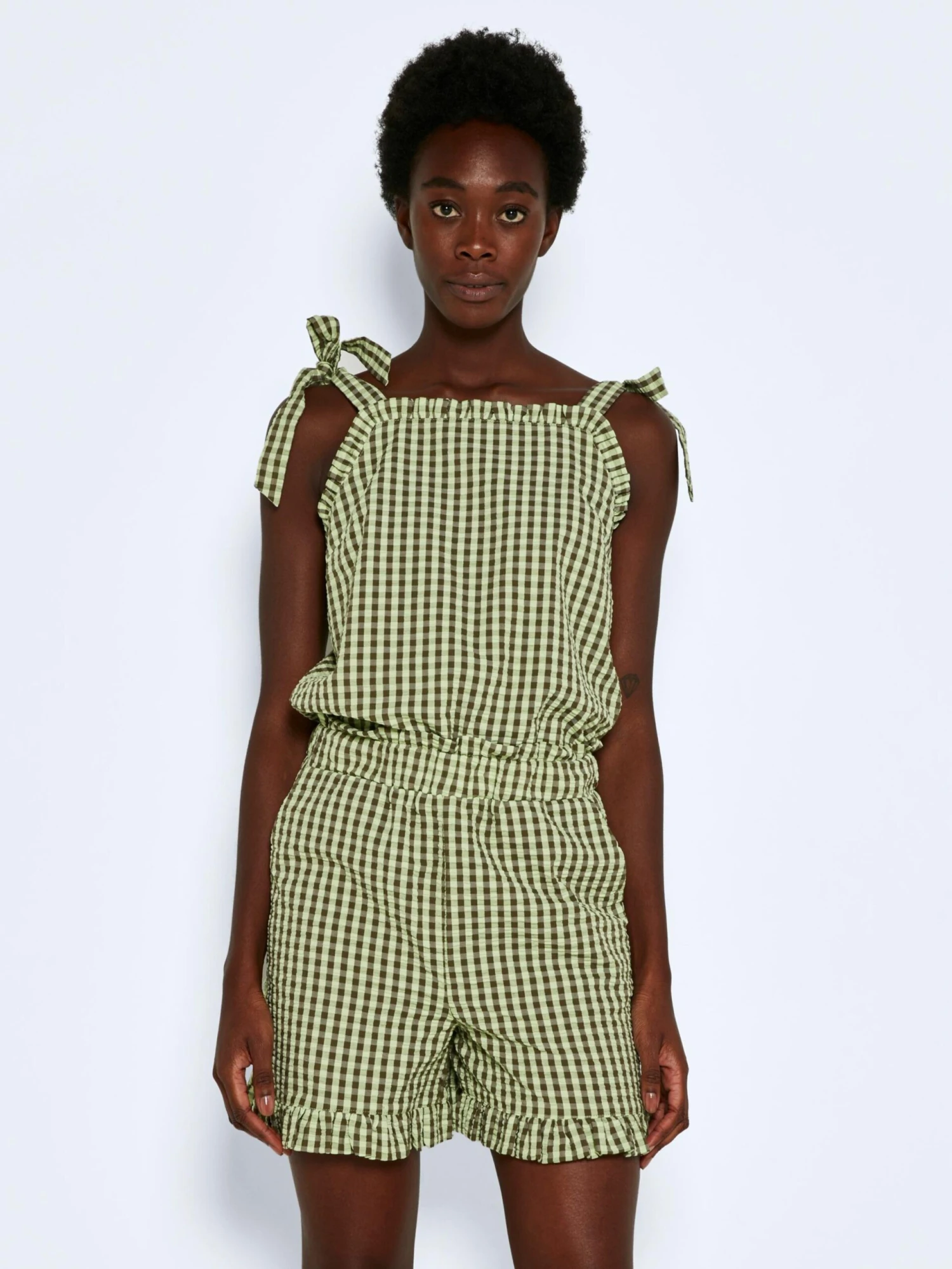 GeruitKatoenRuchesGedrapeerdElastische taille/zoomAchterzakPaspelzakAll-over patroonVoelt zacht aan