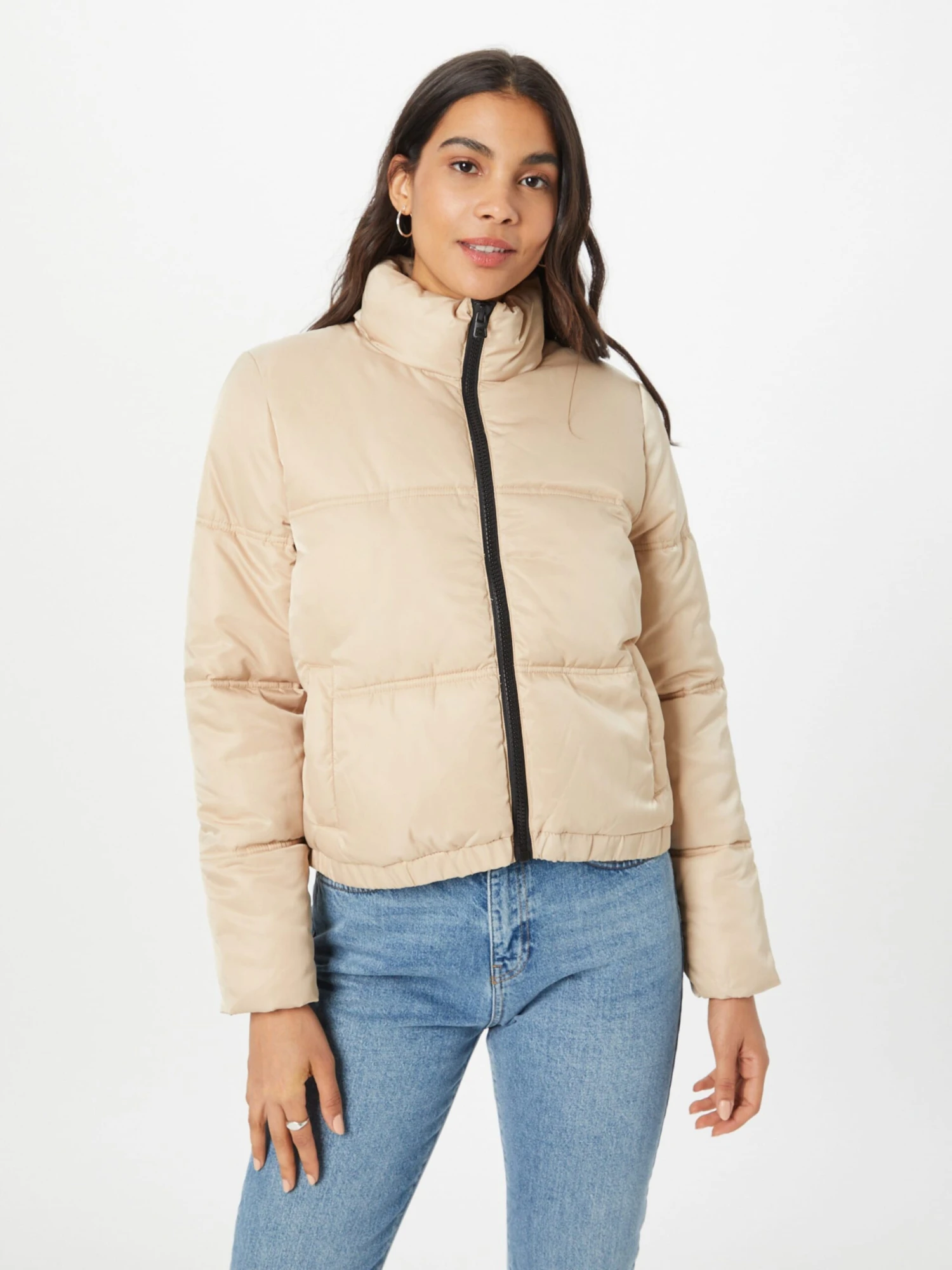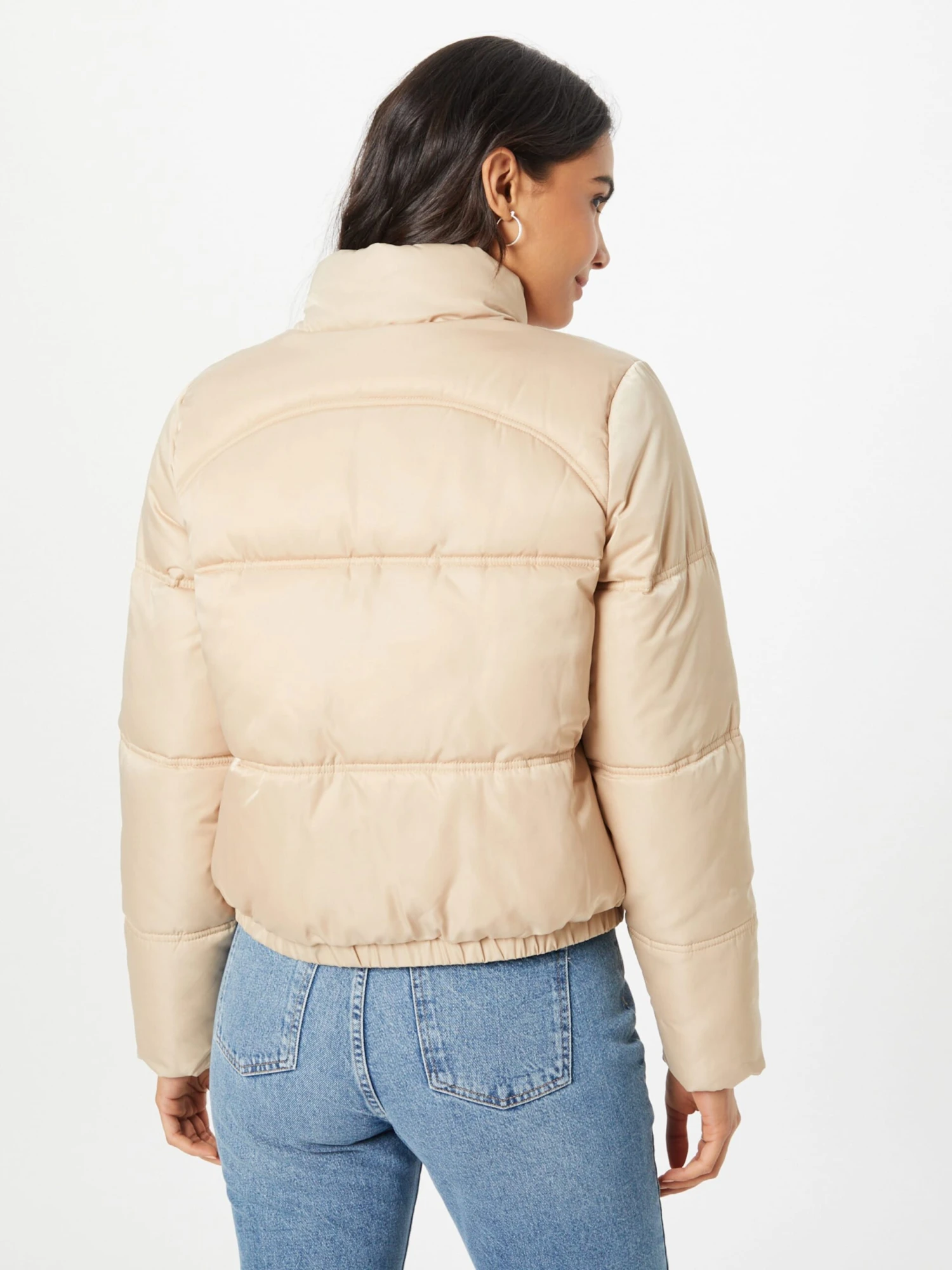 EffenGewatteerde jasRechte zoomStaande kraagZakken aan de zijkantStikselsOp staal nadenGladde stofLicht gevoerdRitssluiting