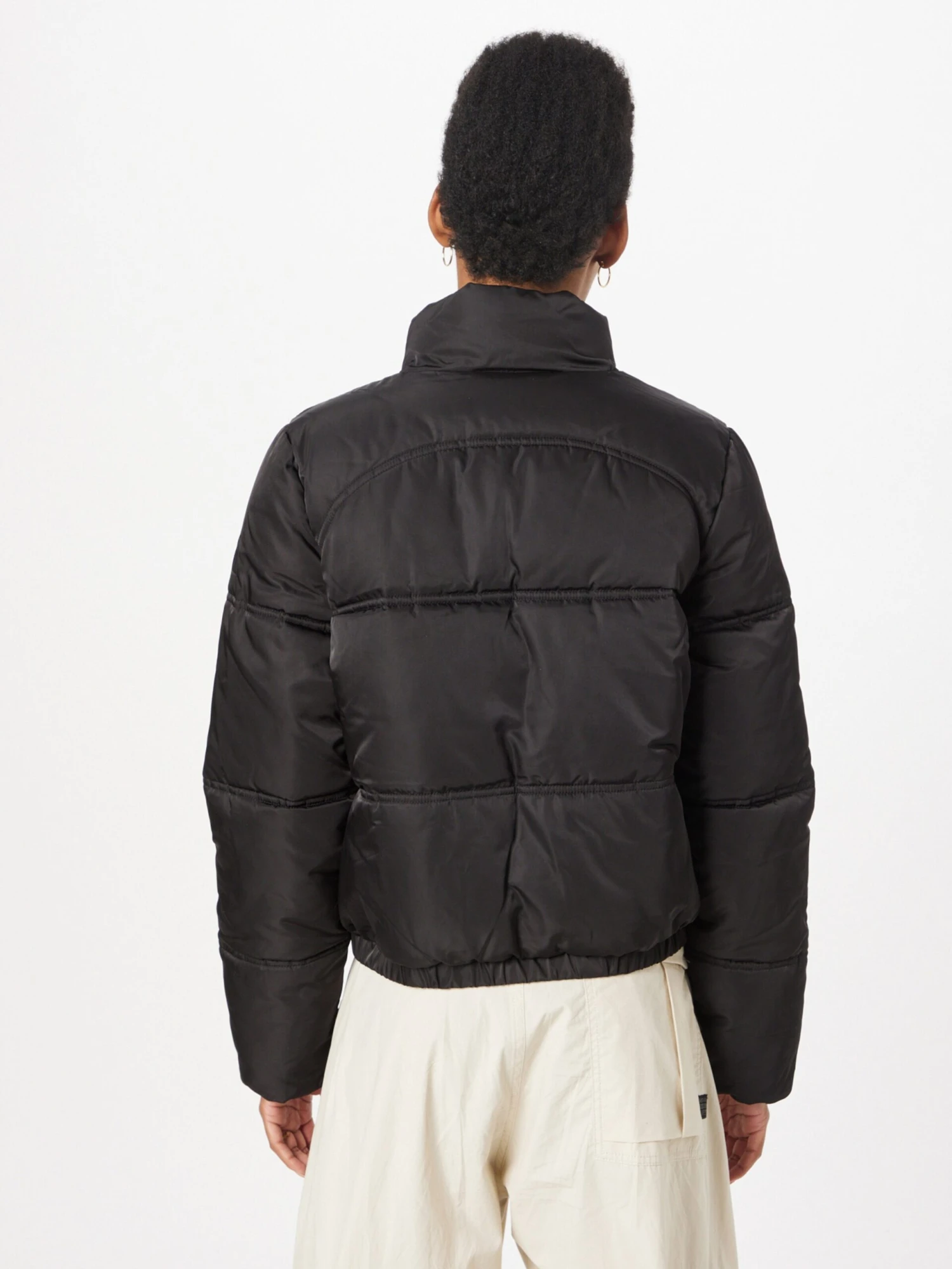EffenGewatteerde jasRechte zoomStaande kraagZakken aan de zijkantStikselsOp staal nadenGladde stofLicht gevoerdRitssluiting