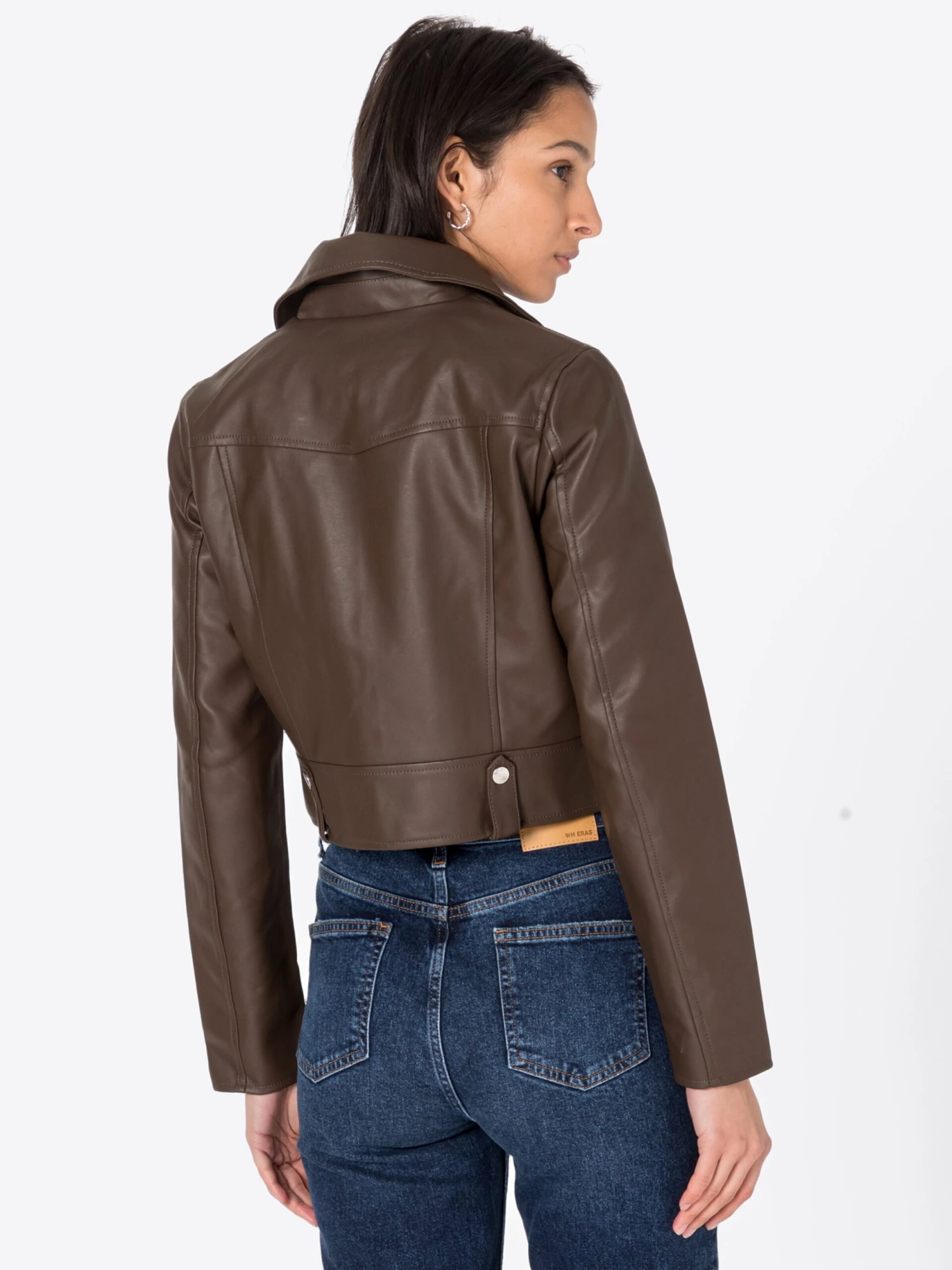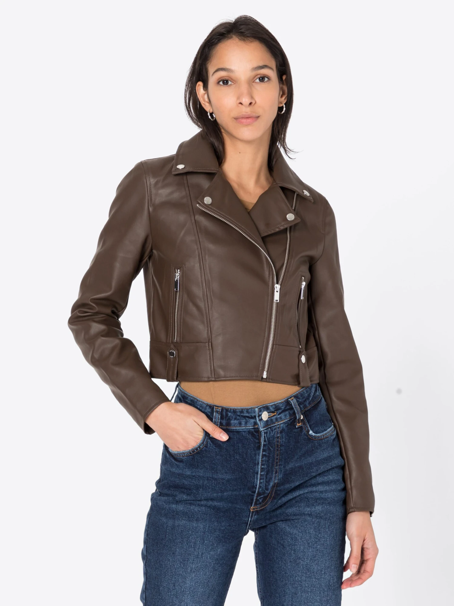 EffenBikerjackRevers kraagRitszakken aan de zijkantSchuine ritsOp staal nadenGladde stofLicht gevoerdRitssluiting