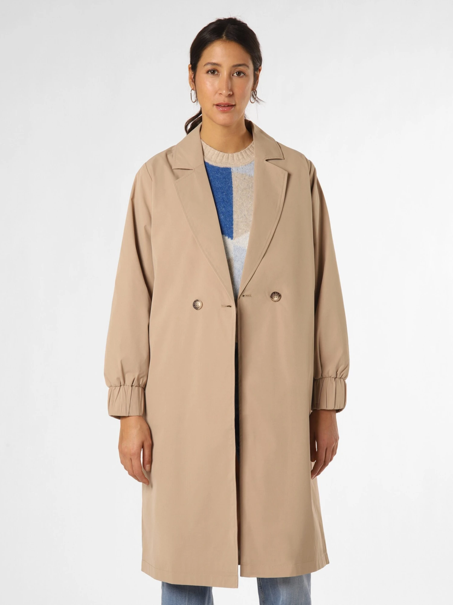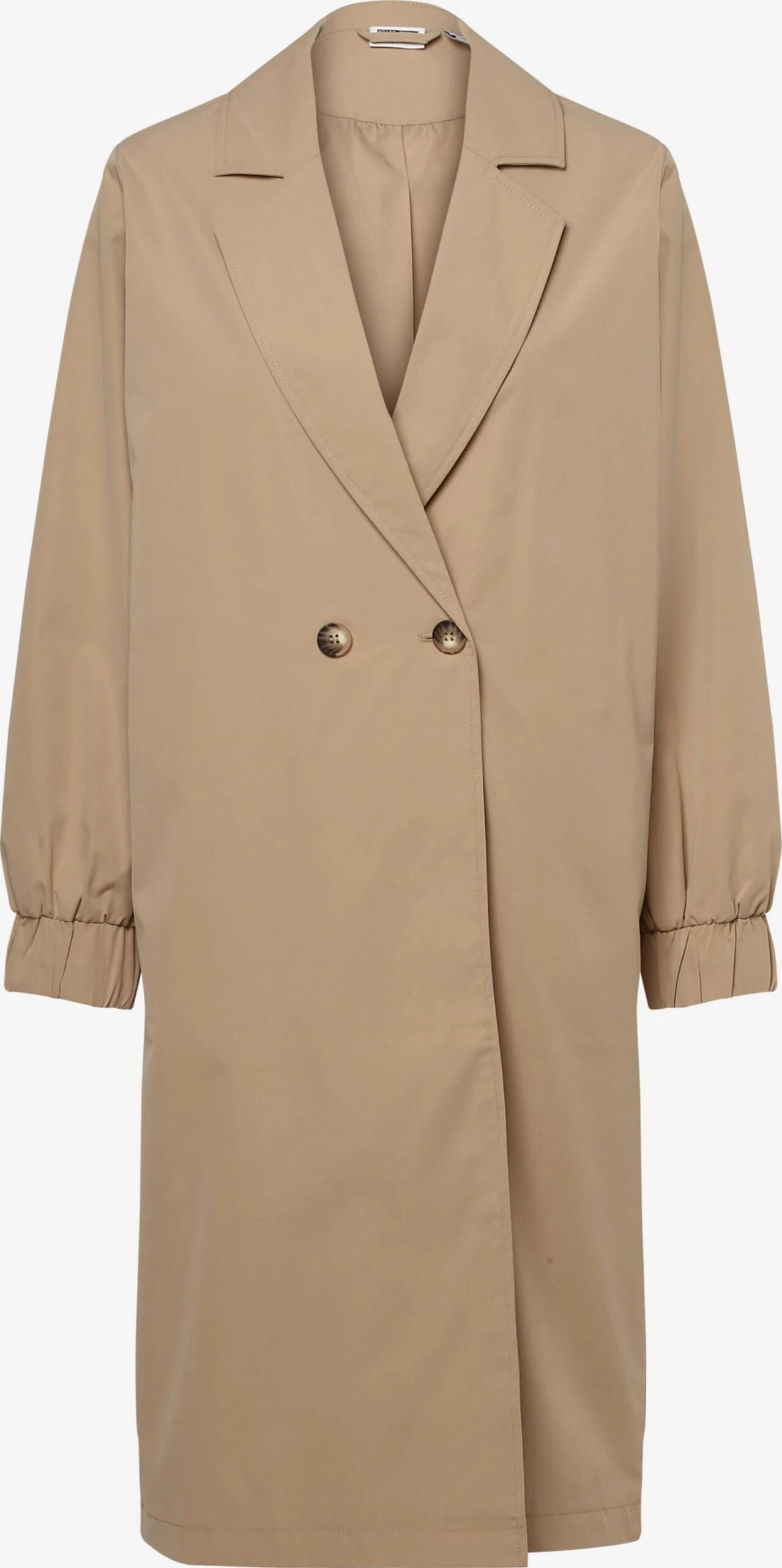 EffenKlassieke mantelGevoerde zoom/randRechte zoomKnop placketRevers kraagOp staal nadenVoelt zacht aanLicht gevoerdKnoopsluiting