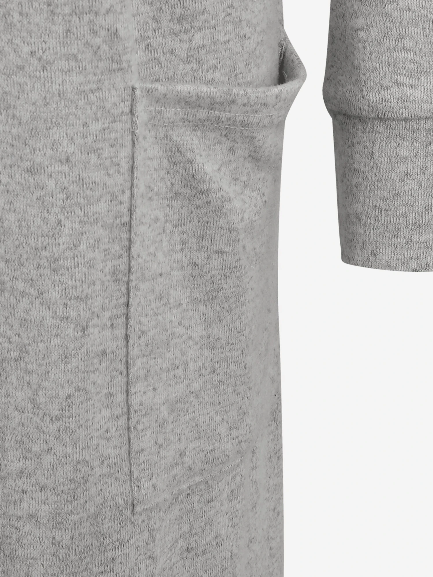 MélangeV-halsGeribbelde kraagGeribd ceintuurtjeOpgezette zakkenZonder sluitingOp staal nadenVoelt zacht aan