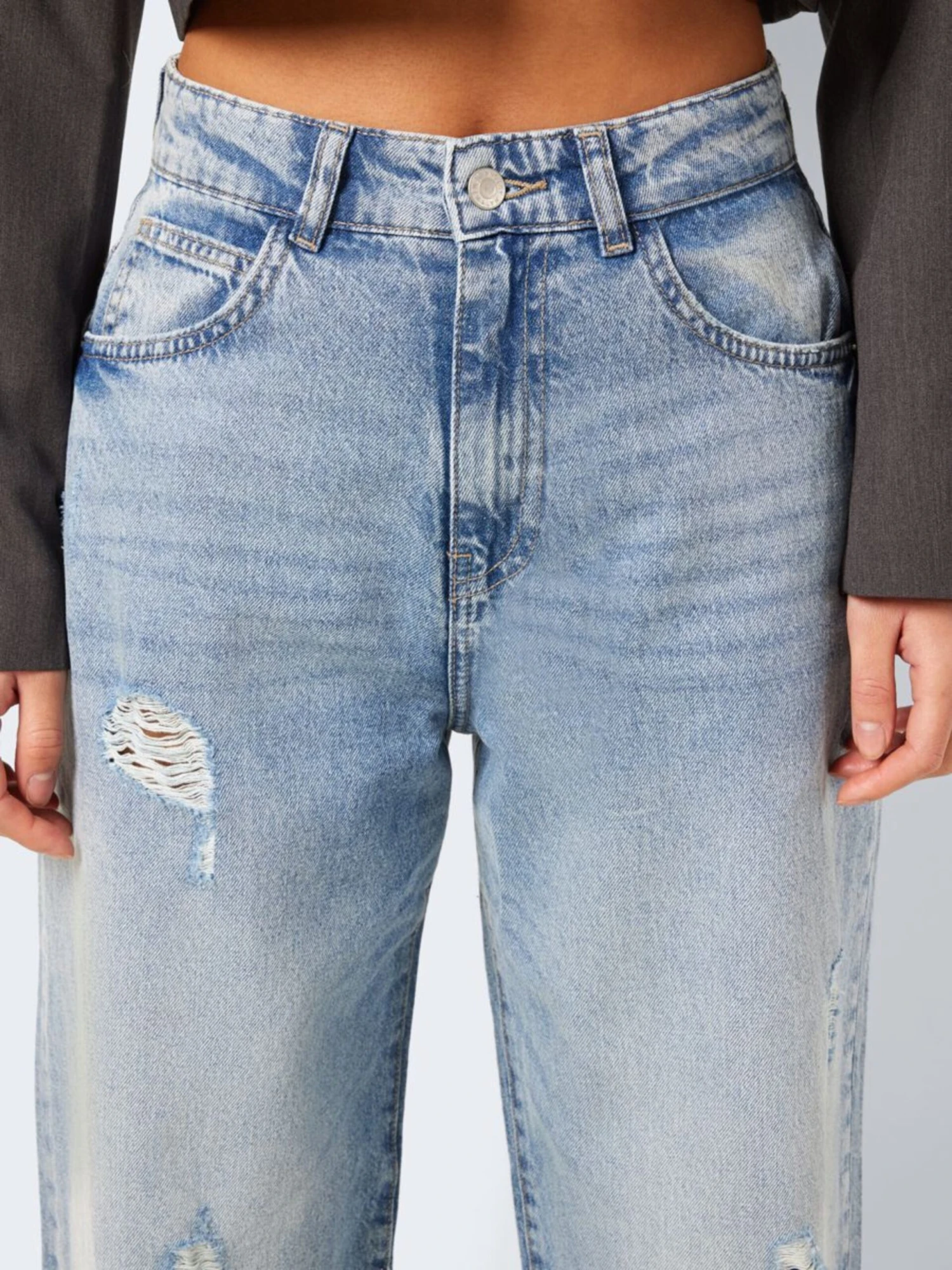 EffenDenimrippedGevoerde zoom/randRitssluiting5-pocket-styleContrasterende nadenLabel patch/label flagUsed-lookGewassen effectVaste gripStevige stofRiemlussenRitssluiting