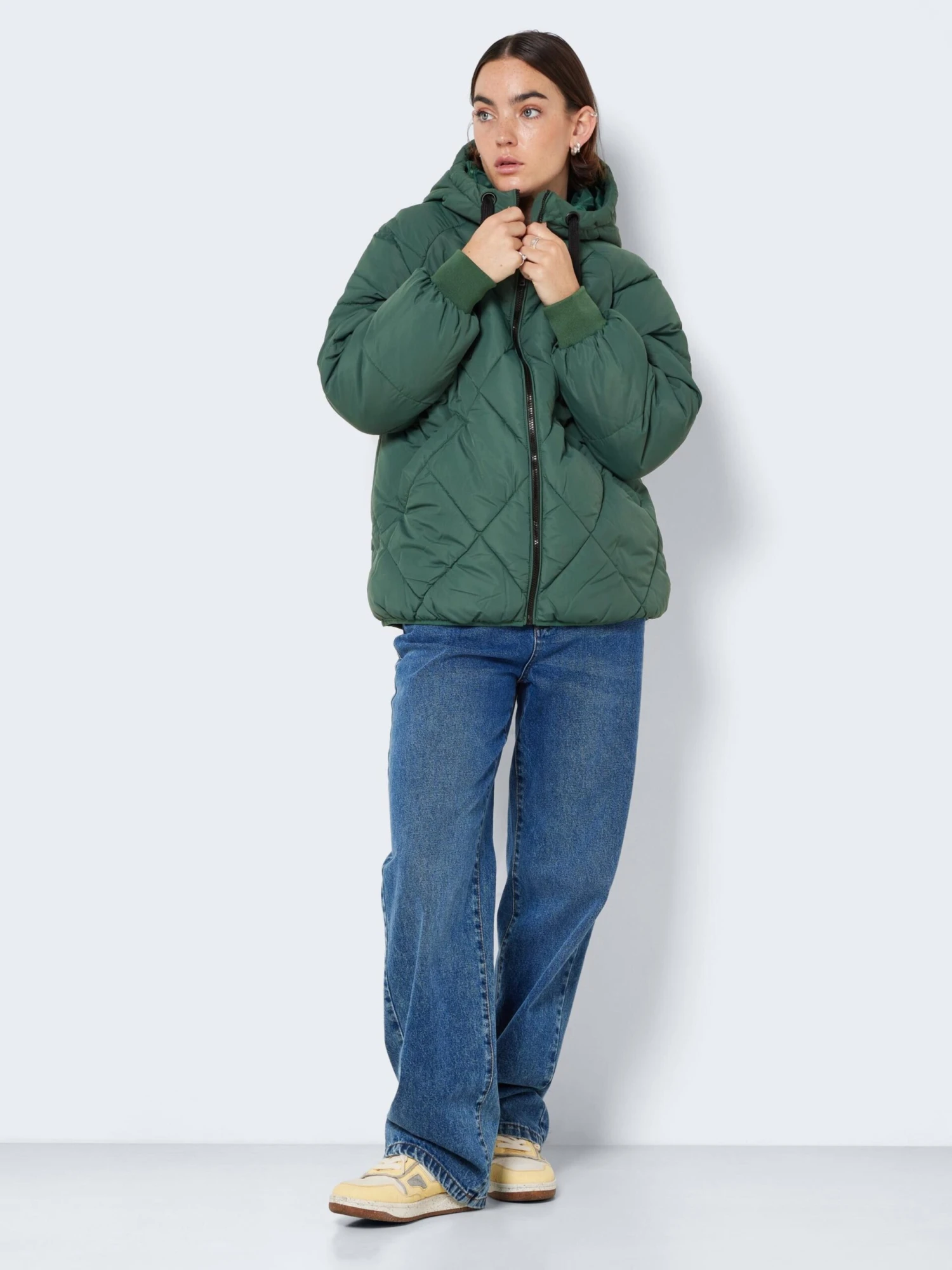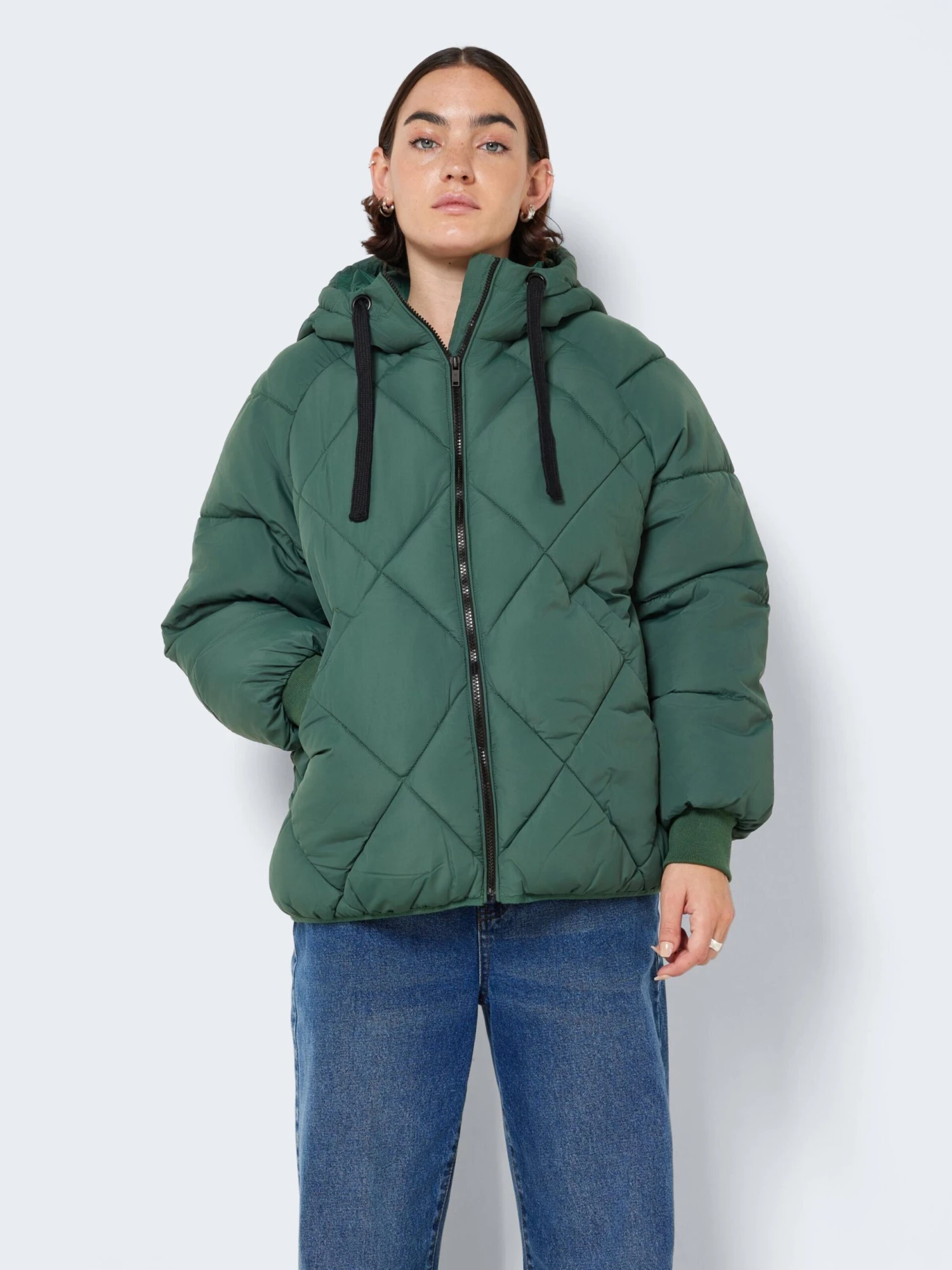 EffenGewatteerde jasRitssluitingCapuchon met trekkoordGeribd ceintuurtjeStikselsLichte stofWarm gevoerdRitssluitingGerecycled polyester