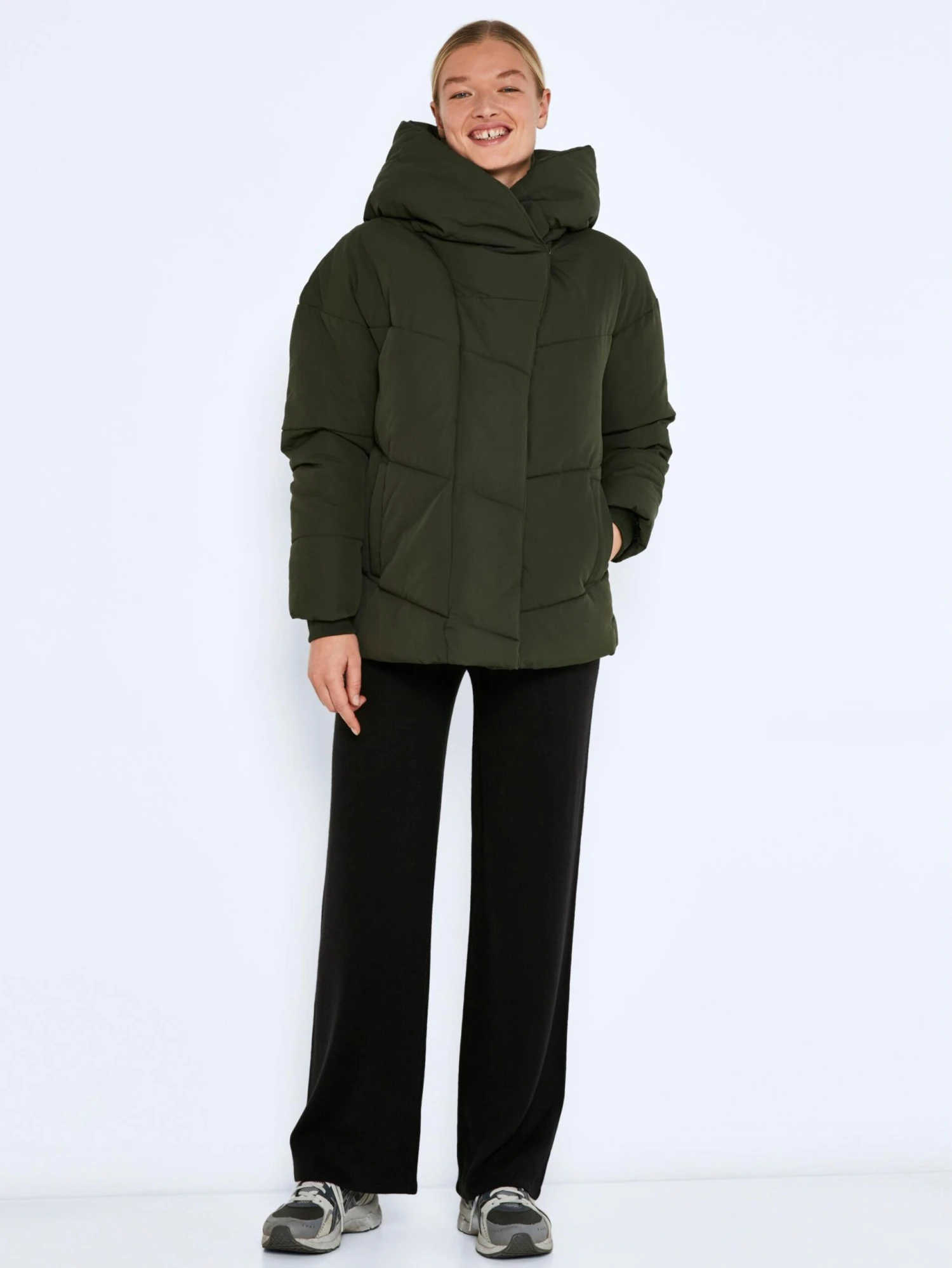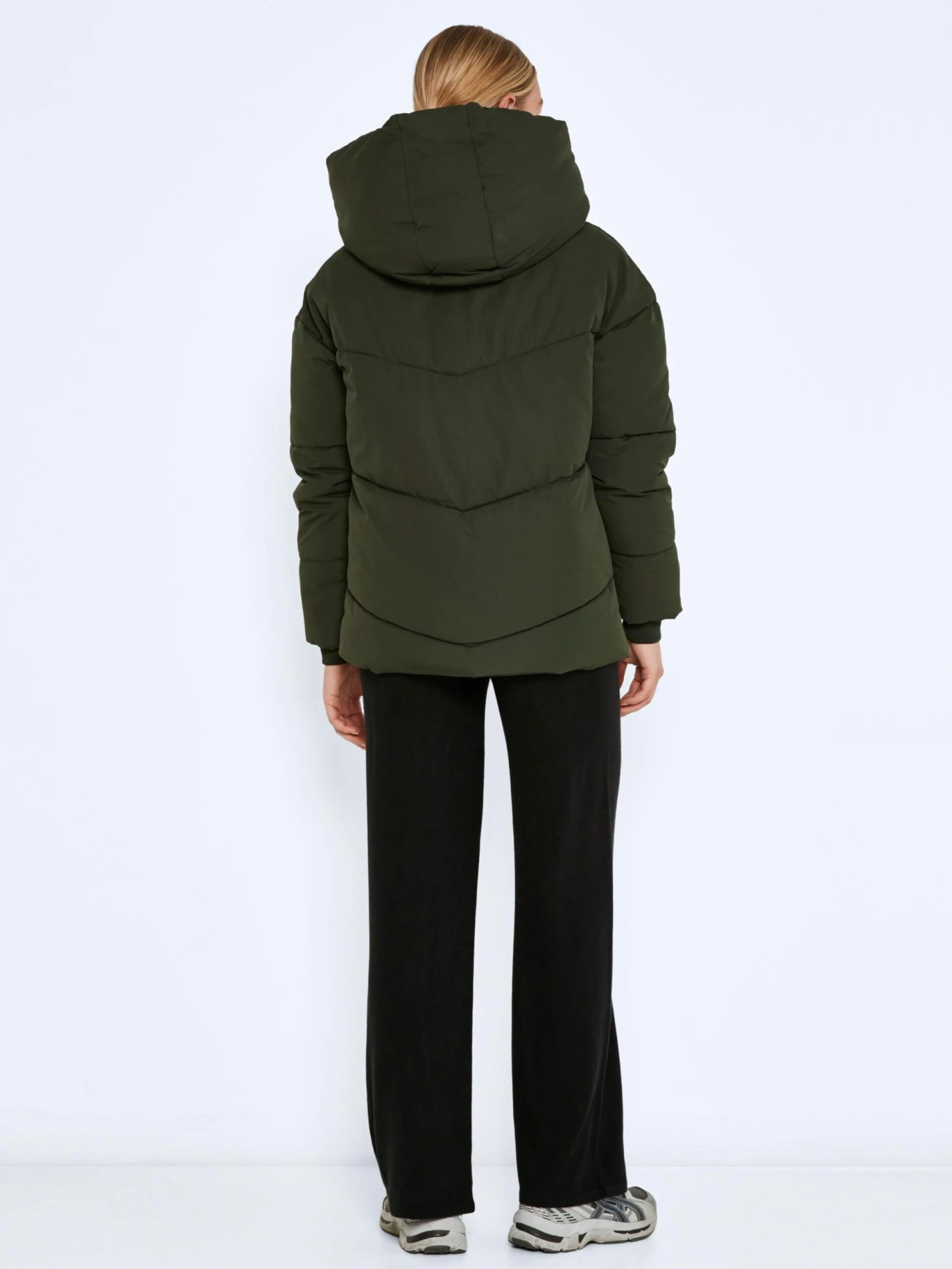 EffenGewatteerde jasRitssluitingDrukknopenMet capuchonGeribd ceintuurtjeStikselsOp staal nadenGladde stofWarm gevoerdRitssluitingGerecycled polyester
