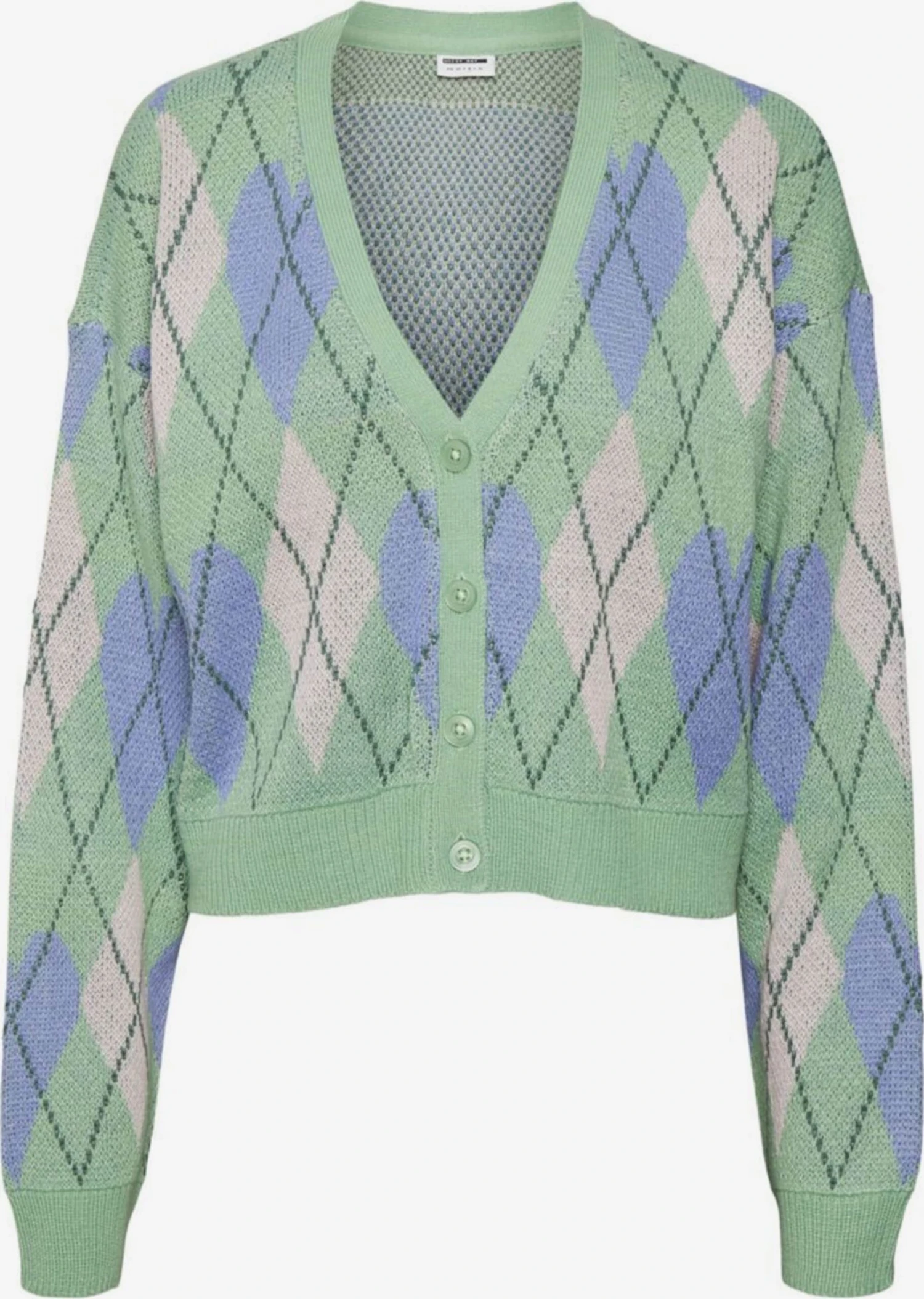 GeruitV-halsGeribbelde kraagGeribd ceintuurtjeOvercut schouderAll-over patroonFully fashionedVoelt zacht aanKnoopsluiting